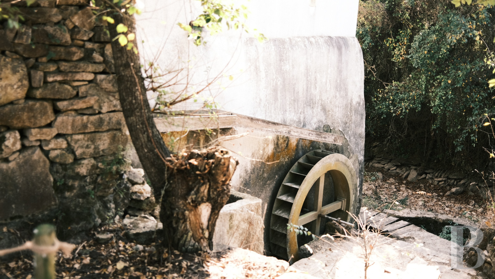 Au cœur du Parc Naturel de Sintra-Cascais, un ancien moulin à eau s'élève sur un cours d'eau, ancré dans le paysage par ses fondations de pierre et ses murs en terrasses. La roue hydraulique d'origine demeure visible, témoin d'une vie tournée autour de l'élément liquide. Aux portes de la plage de Magoito, la propriété s'inscrit dans une clairière de 5.000 m², préservée par les chemins en terre qui la desservent. Les murs respirent leur histoire. L'ensemble s'appuie sur une autonomie écologique : panneaux solaires, batteries, onduleur et réservoirs d'eau collectée. Un puits peut être foré selon licence. Légalement classée moulin à eau, une propriété qui n'entre pas dans les catégories d'habitation conventionnelles. Elle accueille ceux qui cherchent à vivre en marge, en dialogue avec la nature, porteurs d'une autre conception de l'habitat.