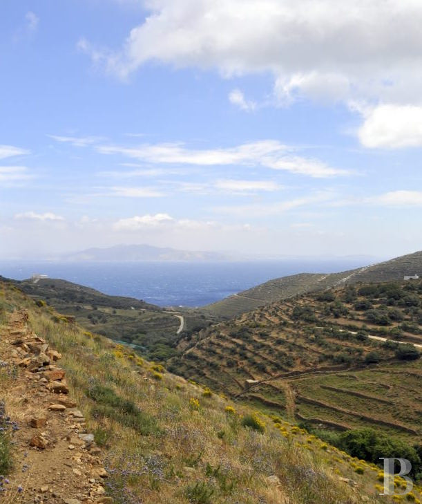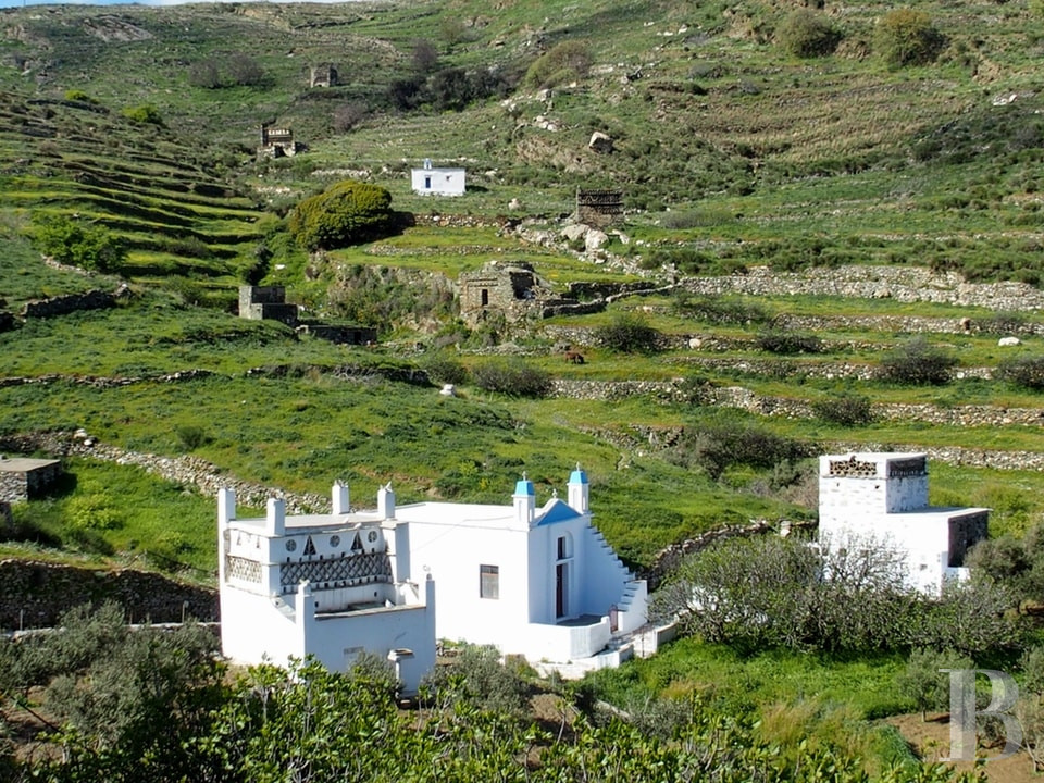 une ancienne ferme oléicole des Cyclades, ses terrasses séculaires et sa solitude préservée
