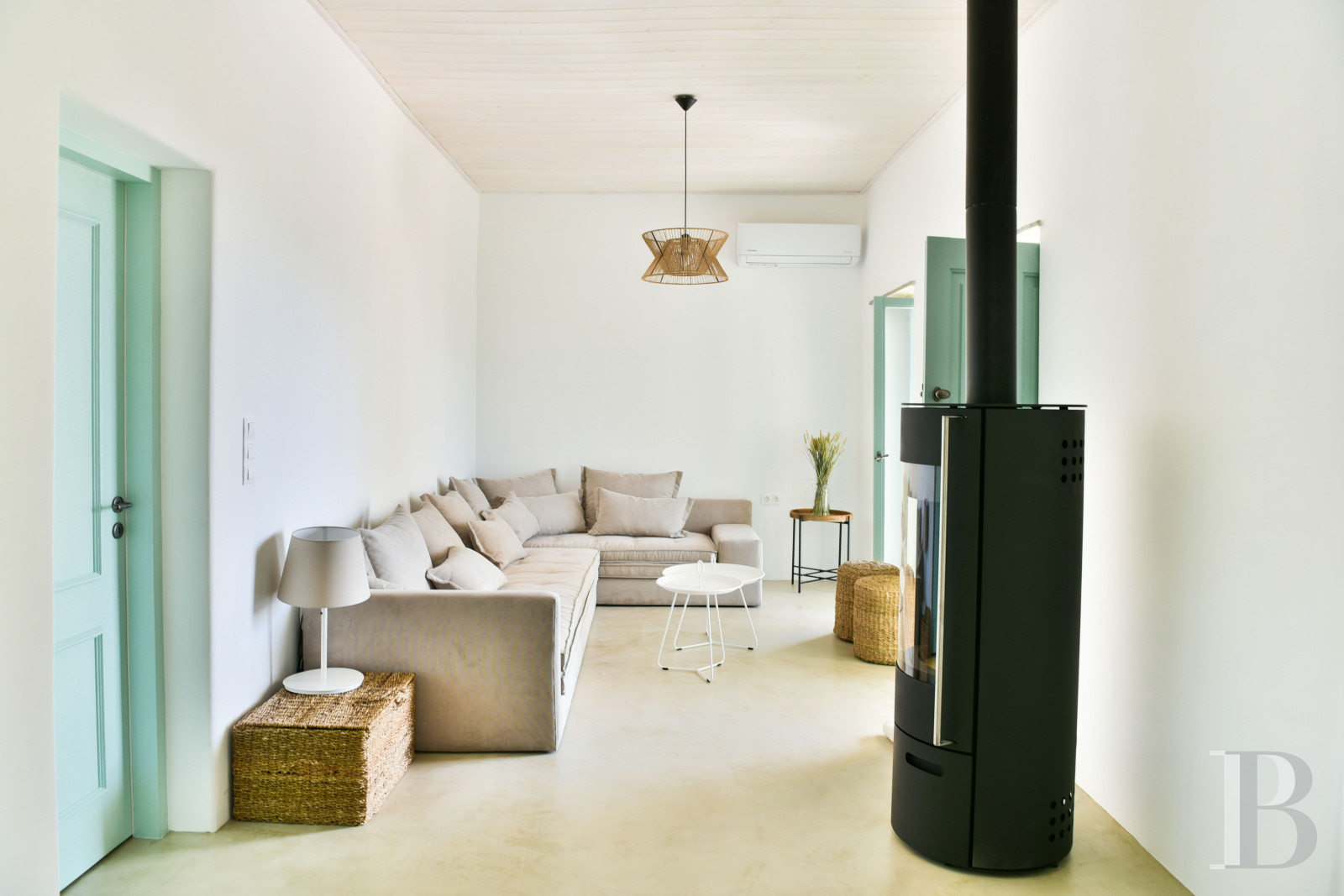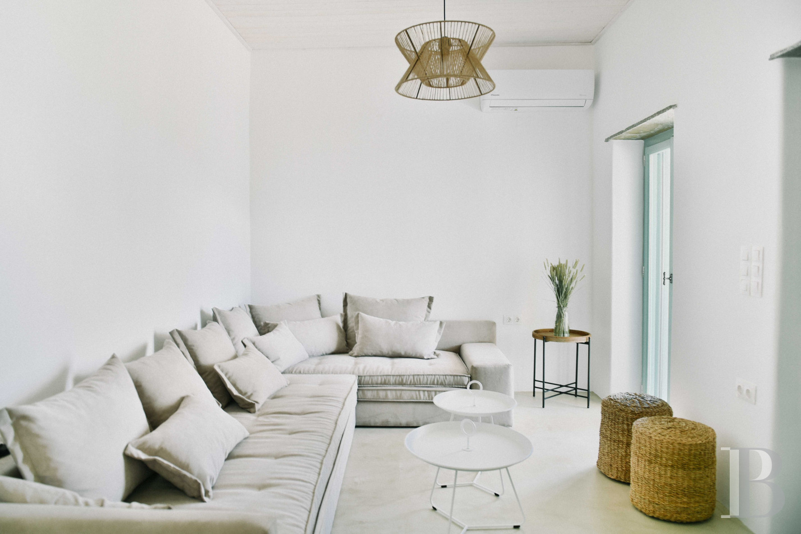 À la pointe de l’ile, l’ancienne ferme oléicole partage avec seulement quelques maisons un point de vue exceptionnel sur la mer et plus loin l’ile de Mikonos. Chacun pourrait croire ici être seul au monde sur cette terre aride que les hommes travaillent pourtant en terrasse depuis des siècles. Blanc lumineux et tons pastel préservent à l’intérieur de la maison une douce sobriété comme pour laisser aux esprits le temps de s’imprégner de toute cette beauté qu’ils auront admirée depuis les terrasses et les jardins. Refuge intime de deux chambres seulement, les heureux élus se sentiront sans doute les visiteurs privilégiés d’une île encore préservée d’un tourisme envahissant.