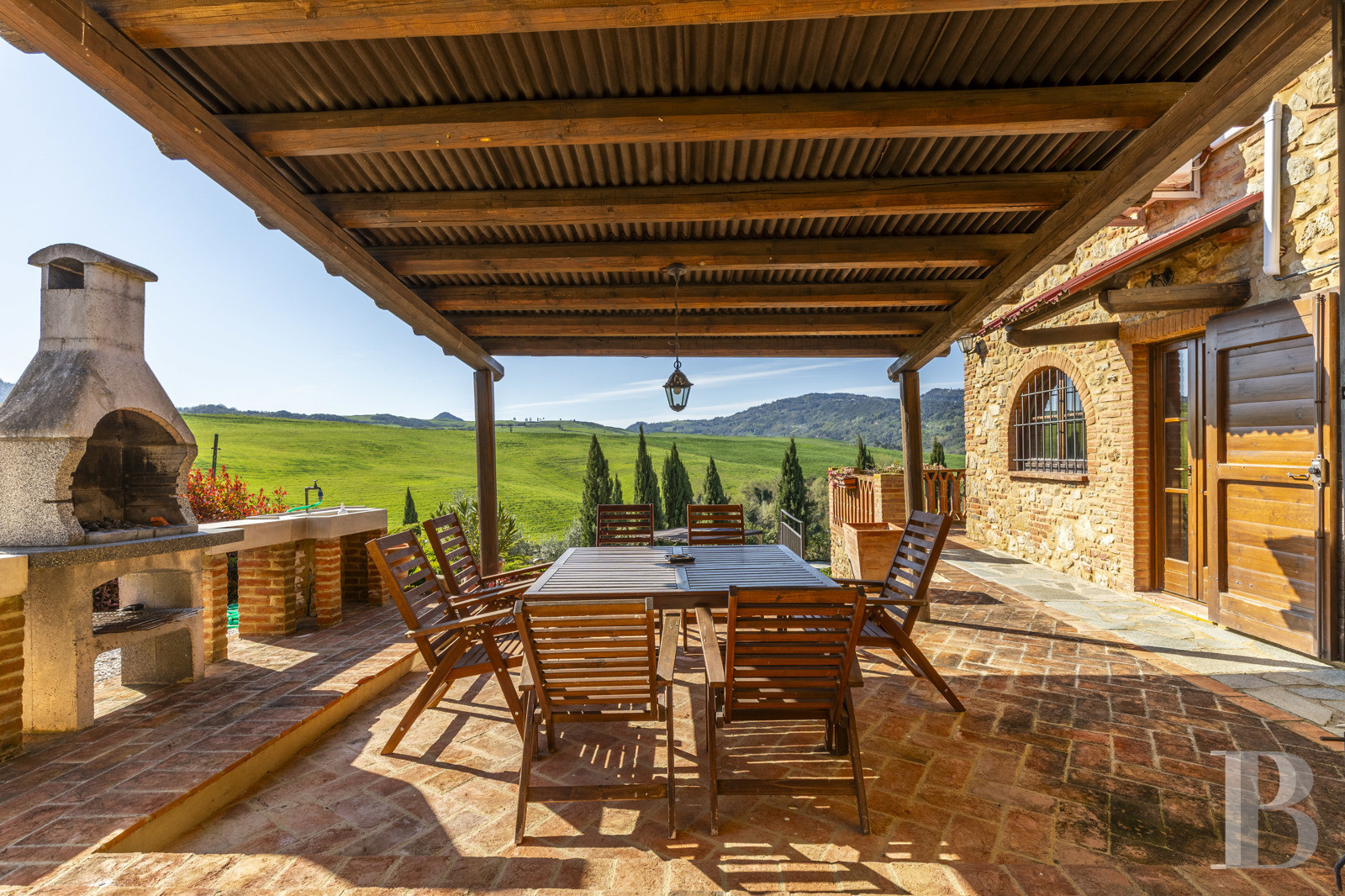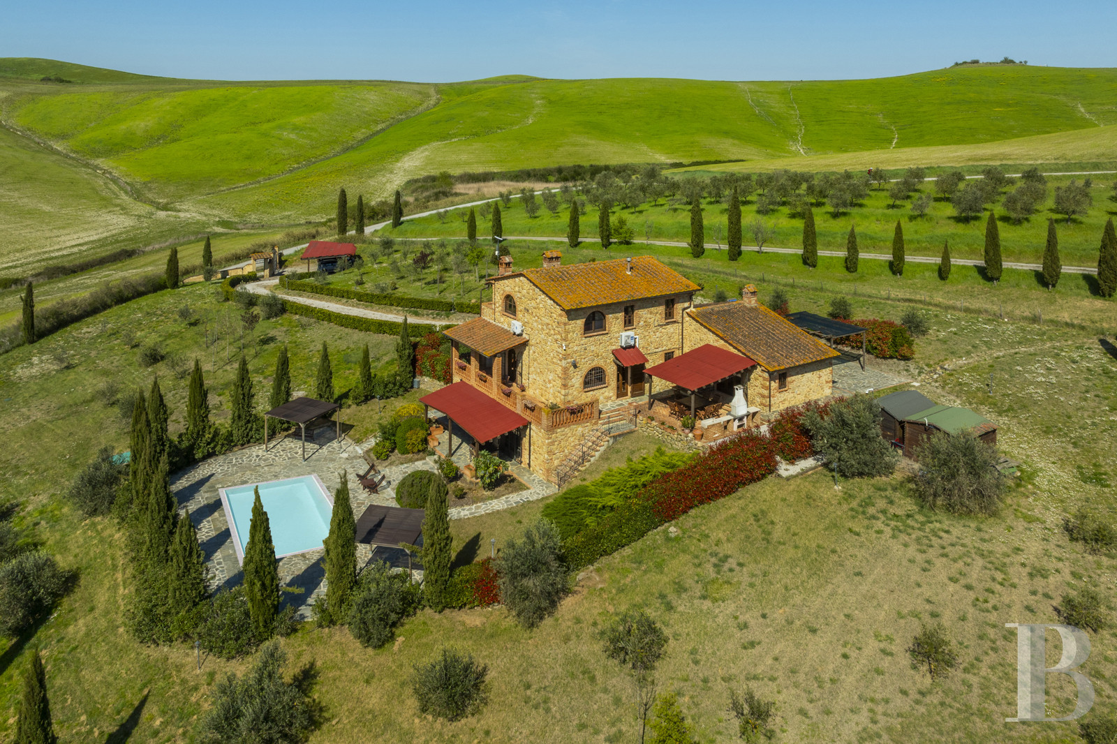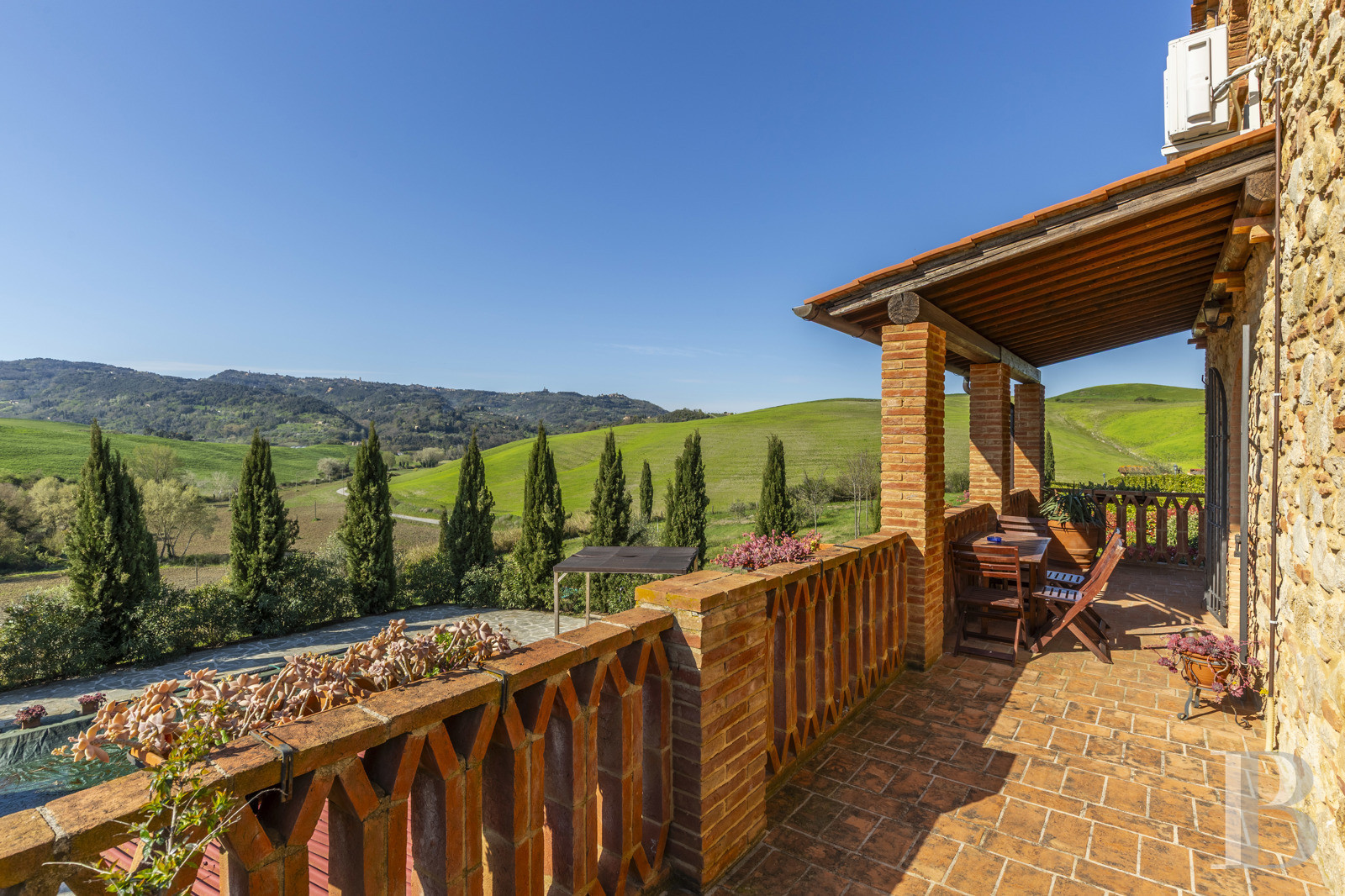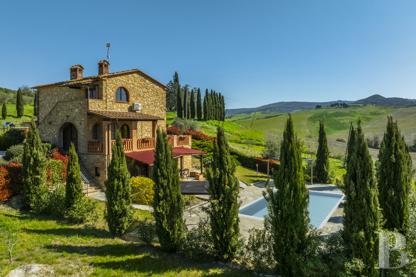 une villa toscane en pierre avec vue panoramique sur les collines
