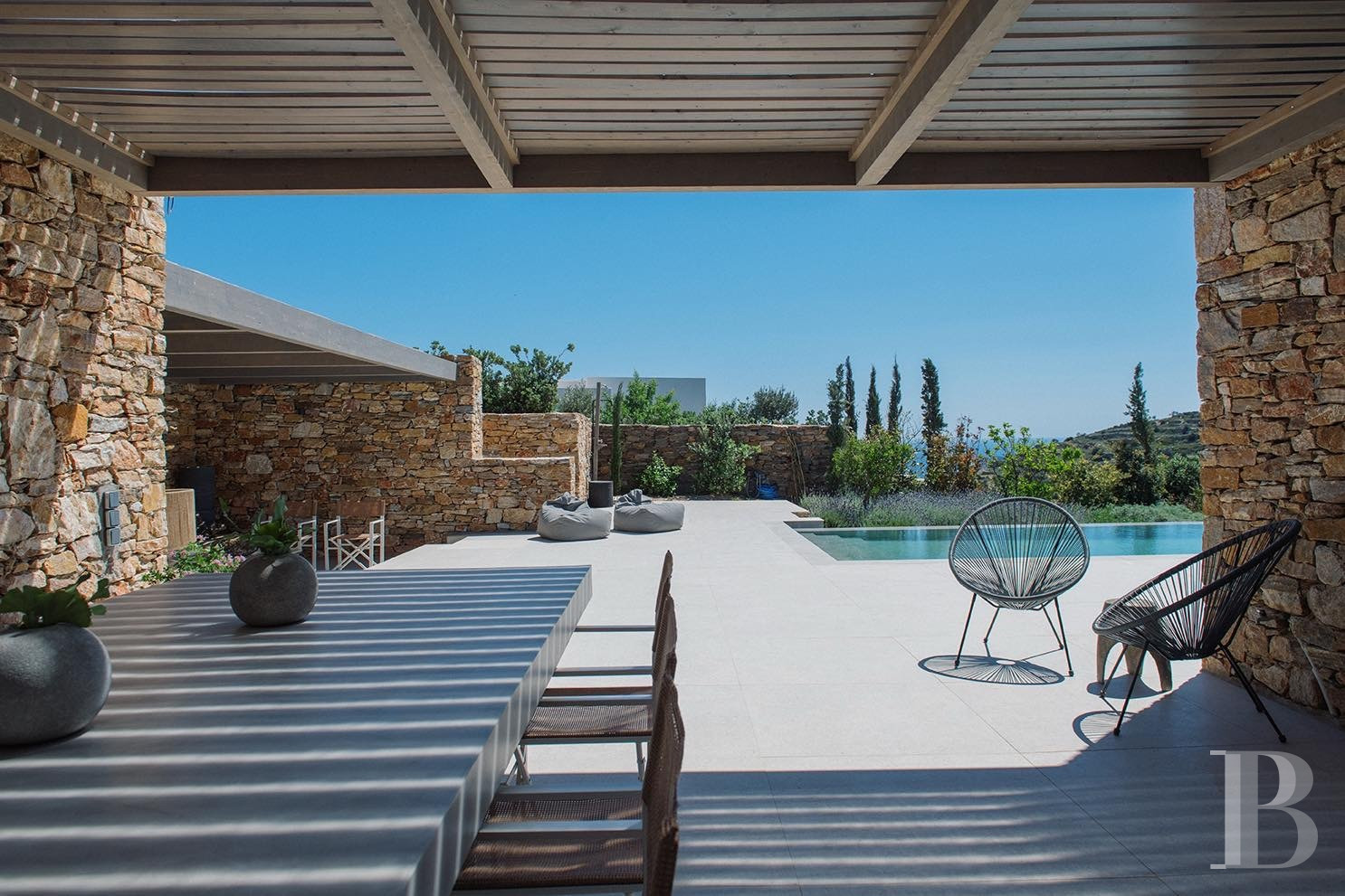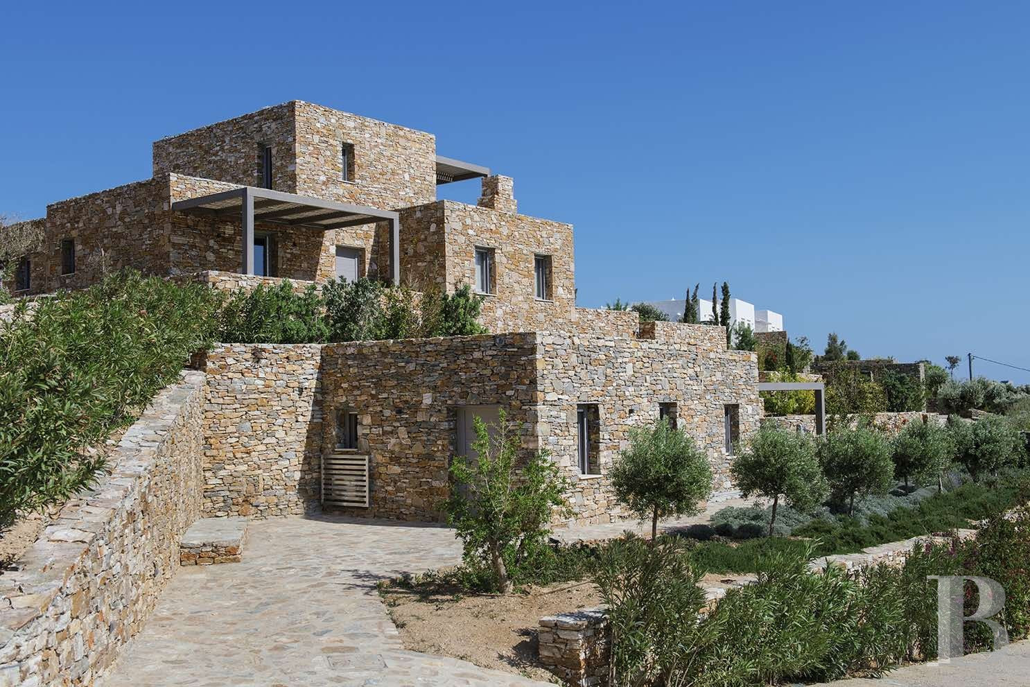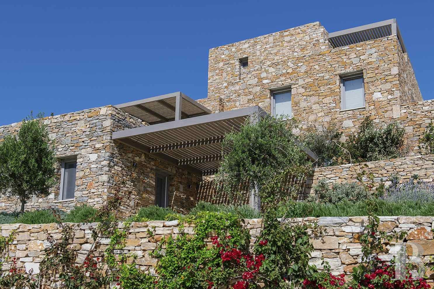 une villa en pierre avec deux maisons d'hôtes indépendantes face à la mer Égée