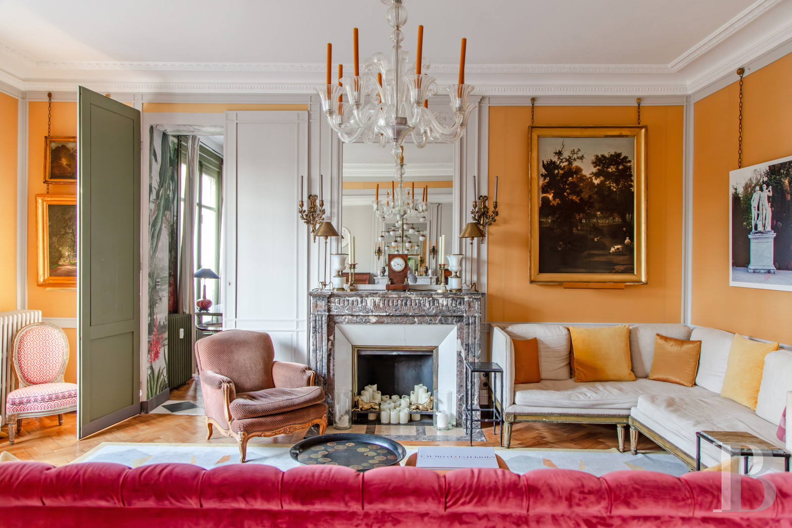 Les occupants actuels ont inscrit le végétal dans les intérieurs, à la manière des demeures aristocratiques du 18ᵉ s. : verdures délicates, étoffes choisies, meubles aux lignes élégantes, dont certains sont susceptibles d’être transmis lors de la vente.