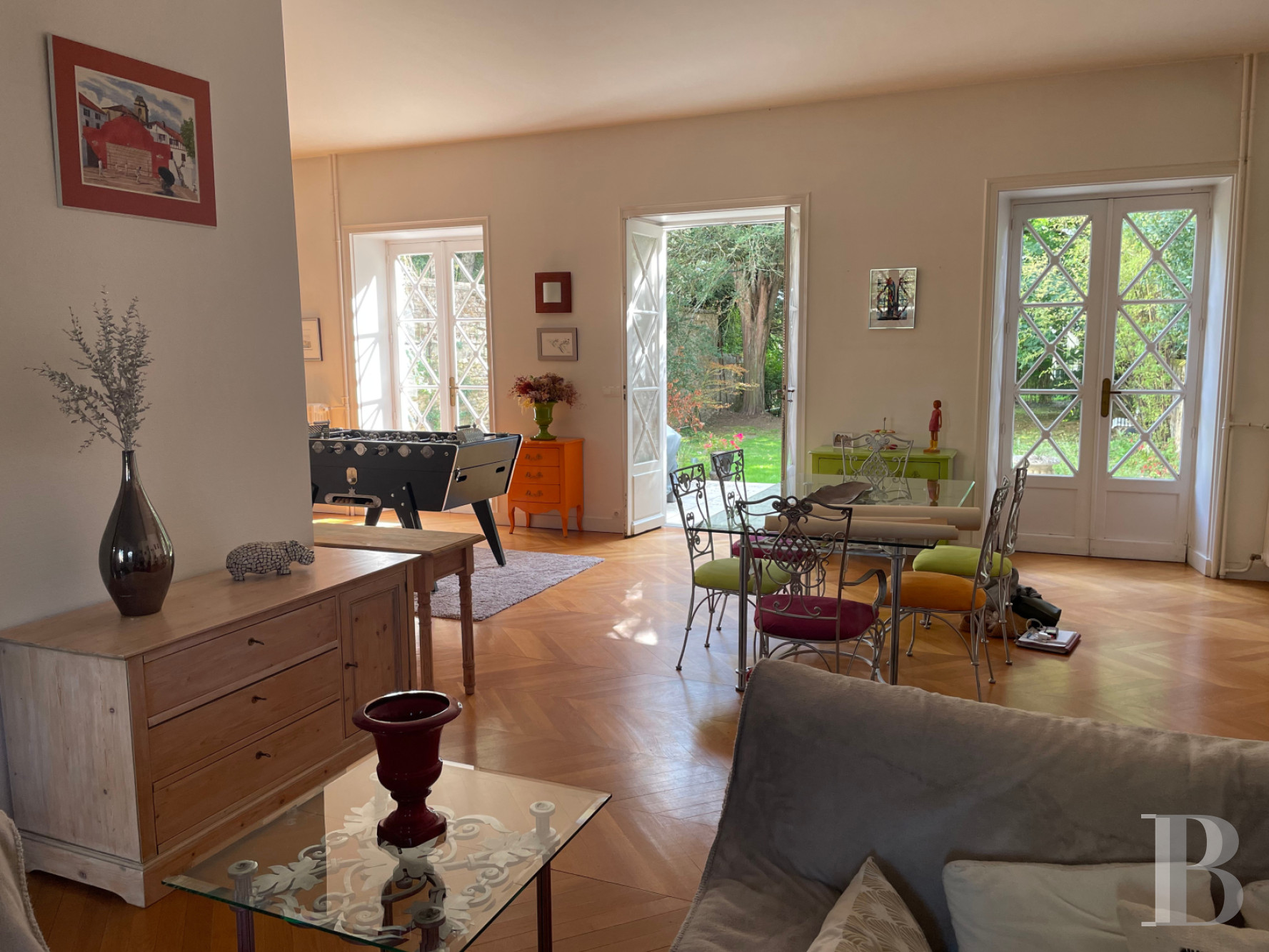Au centre de la cité mancelle, proche de ses grands parcs, de ses écoles et de ses trésors historiques, une élégante demeure du 19e s., abritée derrière de hauts murs de pierre. Immergé dans un grand jardin de ville arboré, l'ensemble est dans un remarquable état d'entretien et dégage une atmosphère simple et classique, avec de nombreux éléments décoratifs d'époque. Les pièces de réception sont traversantes et fluides, largement éclairées de baies tournées vers le couvert végétal. Le confort moderne n'est pas en reste et des équipements de pointe ont été soigneusement intégrés dans les pièces à vivre et les salles d'eau. Protégée des regards et à l’écart du tumulte de la ville, l'adresse est idéale pour la vie de famille, à 1 h 15 de Paris-Montparnasse.