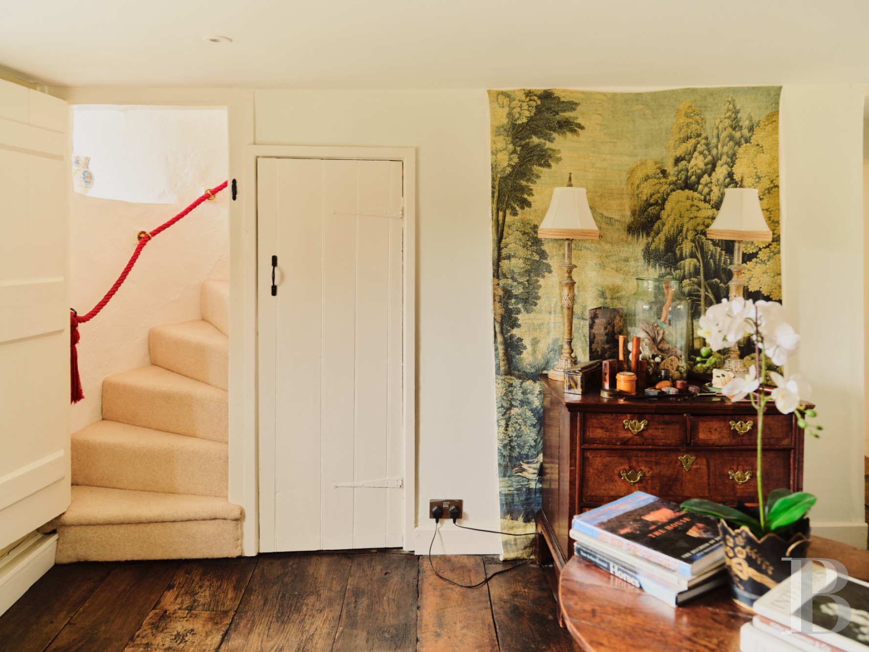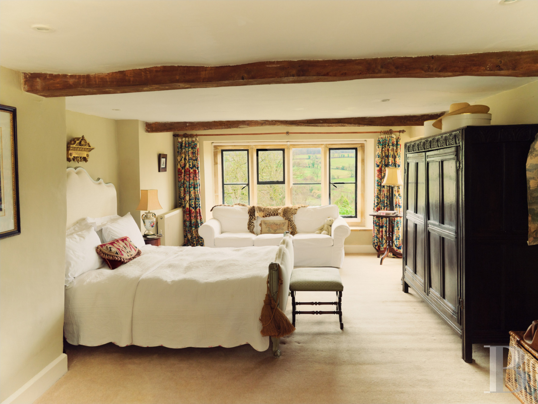 Vicarage Street trace son chemin à travers Painswick depuis que cette ville des Cotswolds exportait laine et tissus vers Londres et Bristol. La restauration de la bâtisse a maintenu le dialogue entre matériaux historiques et équipements contemporains. Le jardin clos orienté plein sud s'ouvre sur des perspectives embrassant la vallée en contrebas, composition paysagère structurée autour d'une terrasse généreuse, pelouses soignées et bordures plantées encadrées de haies de buis. Un refuge végétal protégé par des murs de pierre où déjeuners estivaux et moments de lecture trouvent leur cadre naturel. Painswick occupe une position stratégique au sommet des cinq vallées convergeant vers ce bourg que l'industrie lainière enrichit avant que tourisme et résidentialisation ne prennent le relais au 20e s. Un territoire où la pierre calcaire dorée structure encore villages, murets et granges, préservant l’identité architecturale malgré les pressions immobilières croissantes sur cette région classée Area of Outstanding Natural Beauty.