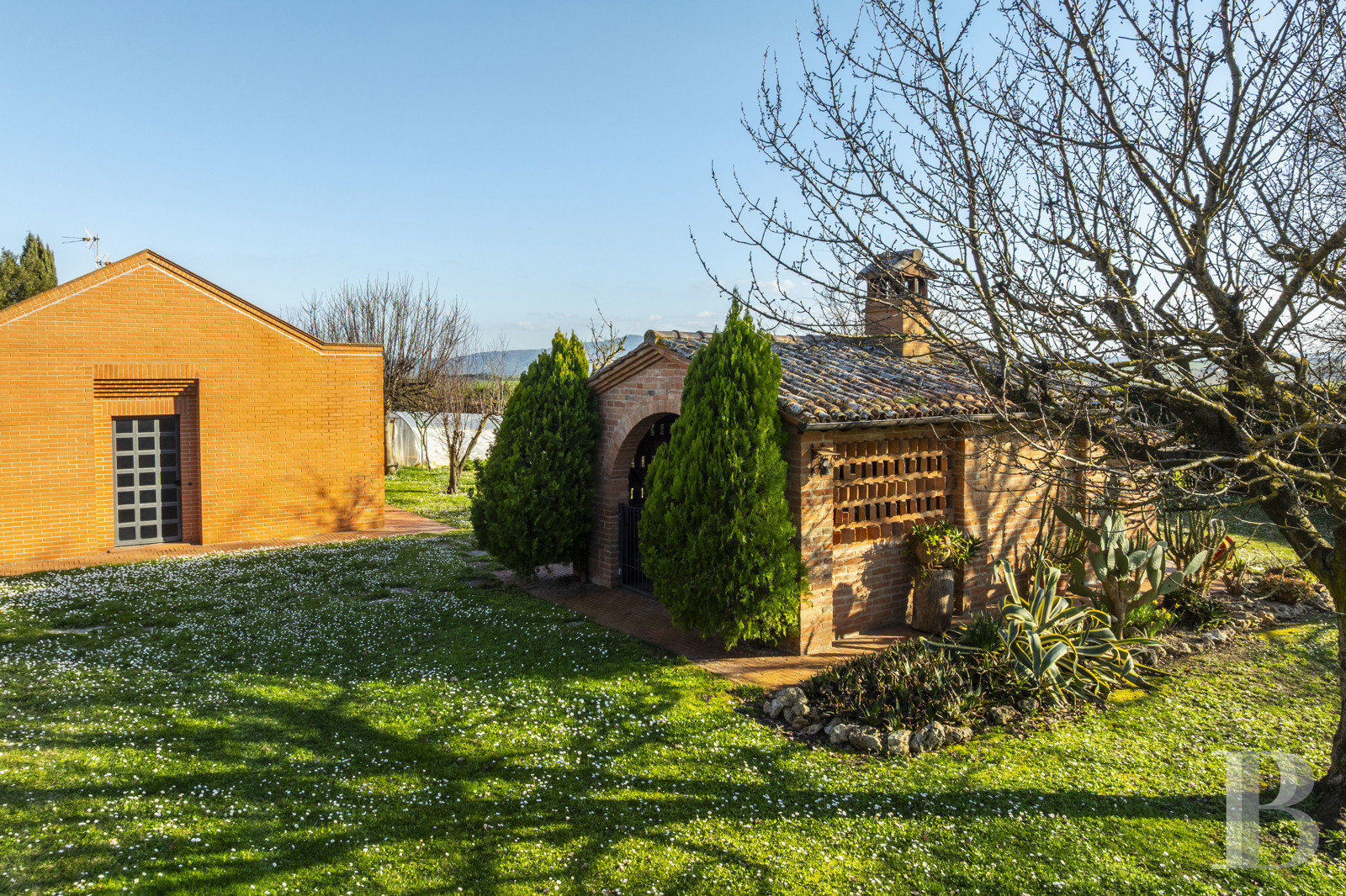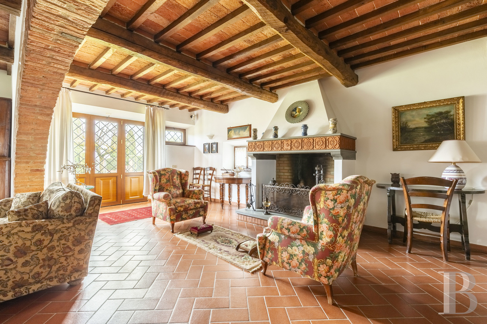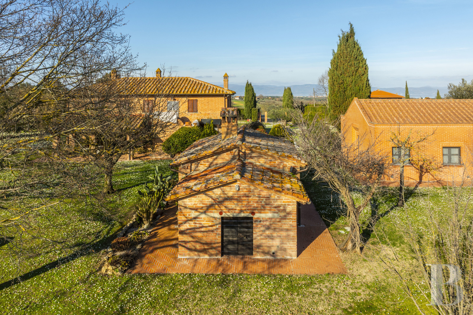 Une bâtisse ancienne et authentique, dans un mariage harmonieux de la pierre ombro-toscane et des matériaux traditionnels. La configuration de l'ensemble, répartie entre casale principal spacieux et dépendance indépendante, permet d'y associer les atouts de la vie contemporaine sans altérer l'authenticité et l'atmosphère des lieux. La nature, présente de toute part, ménage imprenables perspectives paysagères sur le lac Trasimène et les campagnes environnantes depuis la position dominante en colline. Sa position sur les hauteurs offrant tranquillité et panoramas, la modularité des espaces ainsi que le calme de l'environnement naturel préservé en font un lieu propice à une résidence principale ou de villégiature autant qu'à un usage d'hospitalité tirant parti des perspectives rares sur le plus grand lac de l'Italie centrale, à la frontière entre Ombrie et Toscane.
