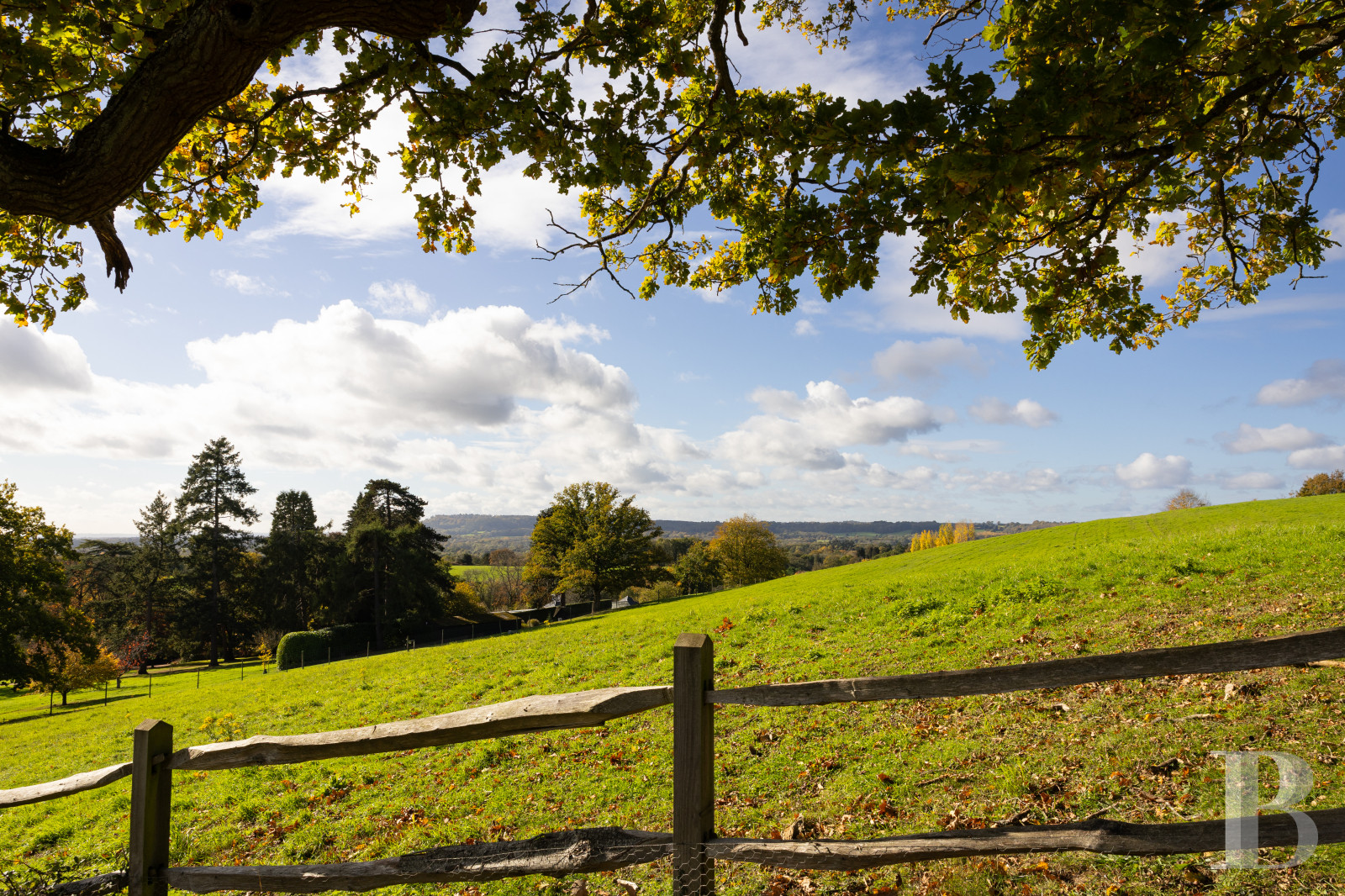Les Surrey Hills ont cette façon d'absorber les propriétés qui leur ressemblent. Tumblers Court leur ressemble. Derrière un double portail, une allée conduit à une cour centrale où un bassin et une fontaine marquent le seuil entre le monde et autre chose. La maison, dont les origines remontent au début du 19e s., a traversé le temps sans perdre le fil : le Great Room à double hauteur, les pièces de réception ouvertes sur les jardins, la cuisine aux portes-fenêtres tournées vers les terrasses est et ouest disent une époque qui savait encore construire pour durer. Cinq chambres, un cottage indépendant, une piscine, un court de tennis, quelque 1 ha de jardins matures, de potager et de pelouses : l'ensemble a atteint cet équilibre que seuls les lieux vraiment habités finissent par trouver.