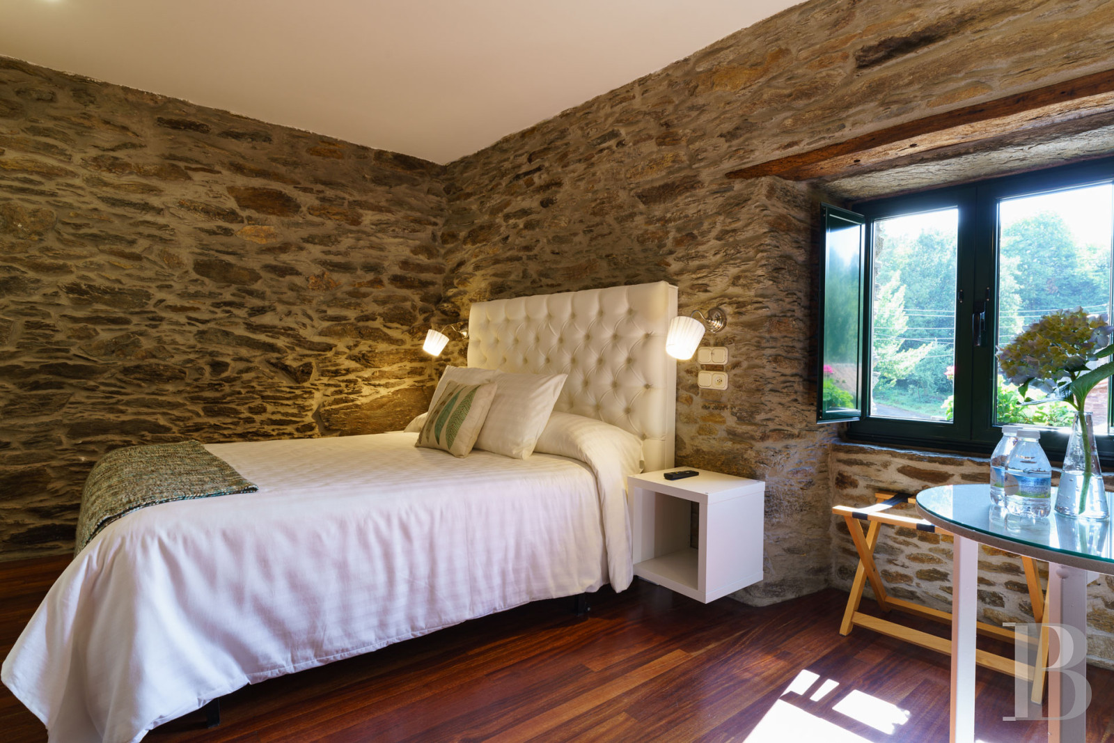 Il est des lieux où l'histoire et le présent se rencontrent sans heurt. Une demeure rurale du 16e siècle, restaurée avec justesse, se dresse aux abords d'Arzúa, dans les vallées et prairies de Galice. Une allée de chênes séculaires y conduit depuis l'ermitage de la Mota, dessinant un chemin naturel vers les pierres anciennes. Les chemins de Saint-Jacques passent là, à l'intersection des voies française, primitive et du nord. La maison accueille aujourd'hui dix chambres doubles qui conservent leurs volumes d'origine et s'ouvrent sur la campagne. Saint-Jacques-de-Compostelle se trouve à trente minutes. Les marcheurs s'y arrêtent, les visiteurs y séjournent. L'ensemble peut se louer intégralement : vingt places entre chambres et suites, jardins et espaces communs où se retrouver, simplement.