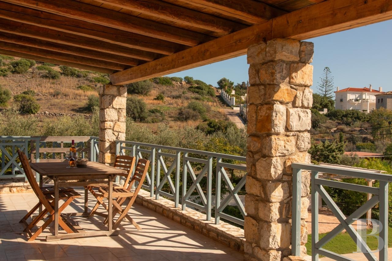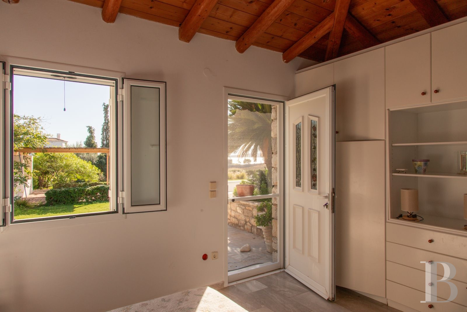 À l'image de l'environnement argolique où elle s'inscrit, une propriété qui constitue un cadre idéal pour apprécier la combinaison d'une mer cristalline accessible sans dénivelé, d'un jardin méditerranéen irrigué par puits privé et d'une architecture traditionnelle en pierre naturelle préservée. Protégée par un terrain de 1 500 m² planté d'oliviers, la maison principale et le studio indépendant peuvent être habités par une famille étendue qui aura à cœur d'offrir indépendance et autonomie à ses membres, ou servir de résidence de location saisonnière, pour tout ou partie. La restauration a donné une cohérence esthétique à ces volumes à l'architecture méditerranéenne sobre, typique de la région, qui met en valeur la beauté de la pierre et les matériaux naturels. Les dimensions du terrain avec son jardin soigné, ses oliviers séculaires et sa piscine alimentable en eau de mer, permettent aussi d'envisager des usages multiples : vie familiale permanente, résidence secondaire, ou exploitation touristique haut de gamme. La position à dix minutes d'Ermioni, deux heures et demie d'Athènes, et la proximité de Porto Cheli, Spetses et Hydra constituent des atouts supplémentaires dans un territoire du Péloponnèse qui conjugue tranquillité résidentielle et accessibilité maritime vers les îles du golfe Saronique.