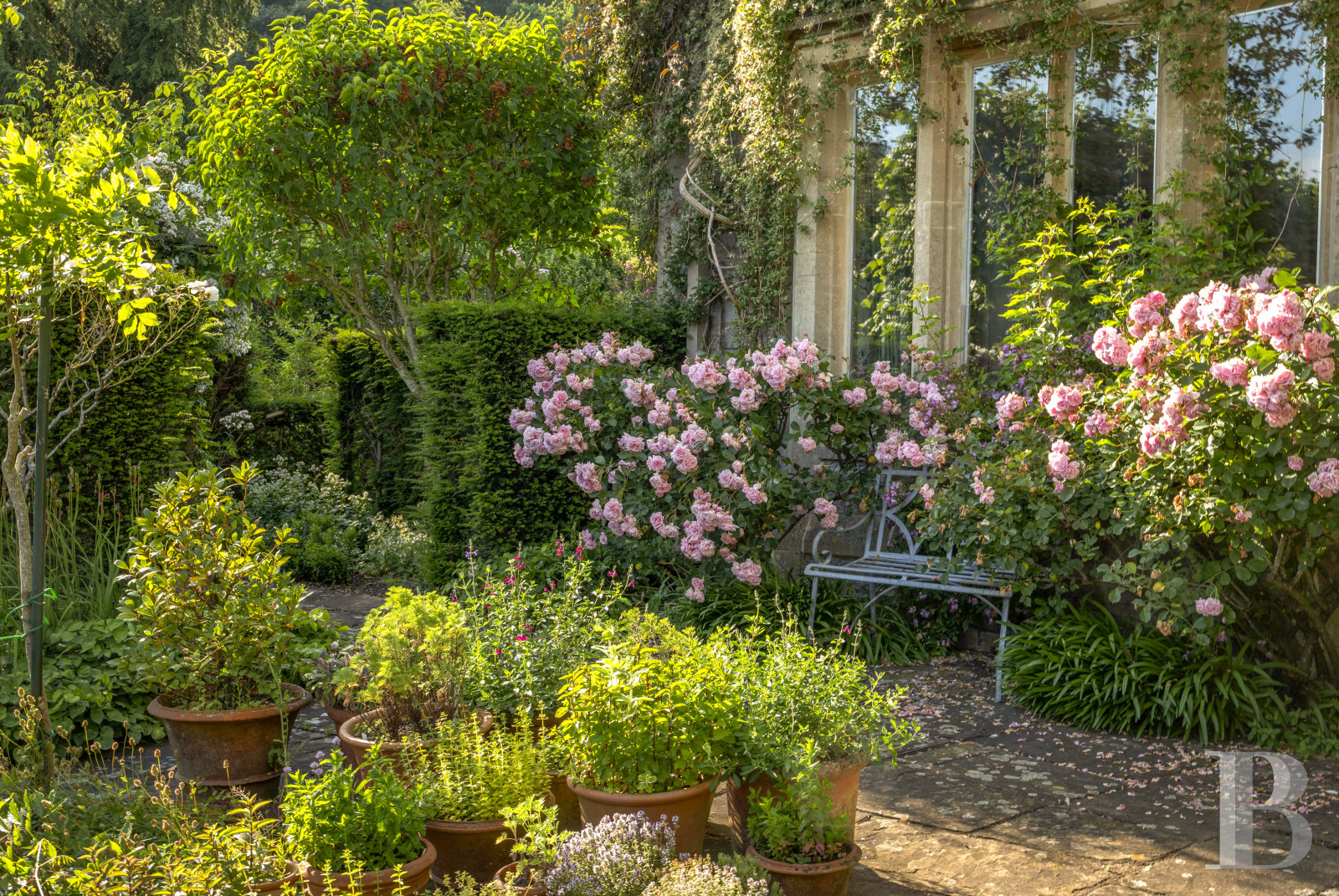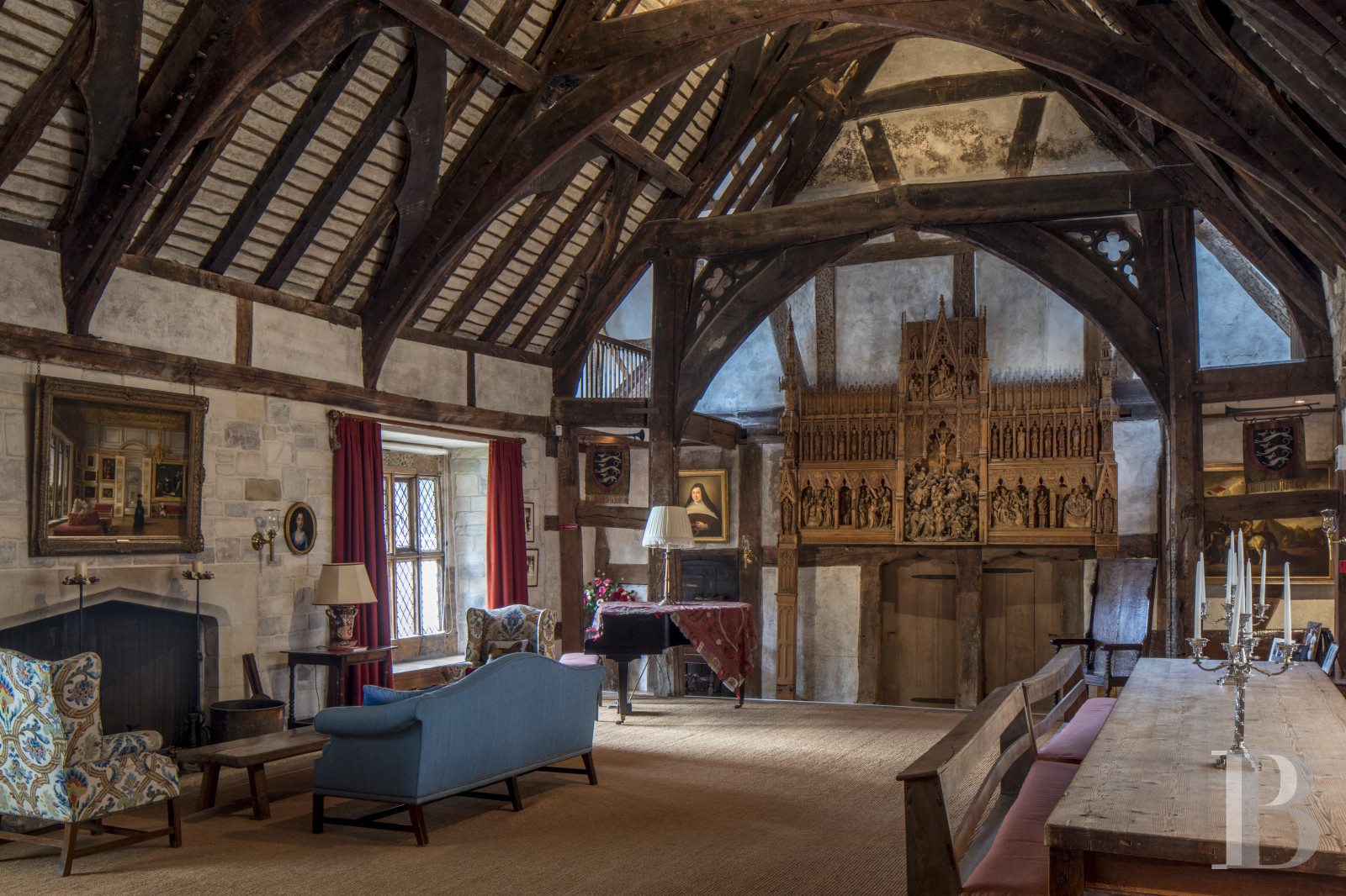 Neuf siècles ne s'expliquent pas. Ils se lisent dans la pierre, dans l'épaisseur des murs, dans la manière dont la lumière entre par les fenêtres à meneaux du Prior's Hall comme elle le faisait au 15e s., quand les moines bénédictins de St Giles avaient encore leur mot à dire sur ces collines. La Dissolution des monastères a changé les mains, pas l'esprit. Les périodes georgienne et victorienne ont superposé leurs propres langages à la trame médiévale, et Little Malvern Court est devenu ce que peu de domaines parviennent à être : un lieu où le temps s'accumule sans se contredire. Les Malvern Hills d'un côté, la vallée de la Severn de l'autre. Entre les deux, 15ha de jardins formels, topiaires, potager victorien, verger et parc, deux cottages indépendants, un triple garage avec logement, des terrasses d'où le regard ne trouve pas de limite. Certaines propriétés racontent une époque. Celle-ci en traverse plusieurs sans en trahir aucune.