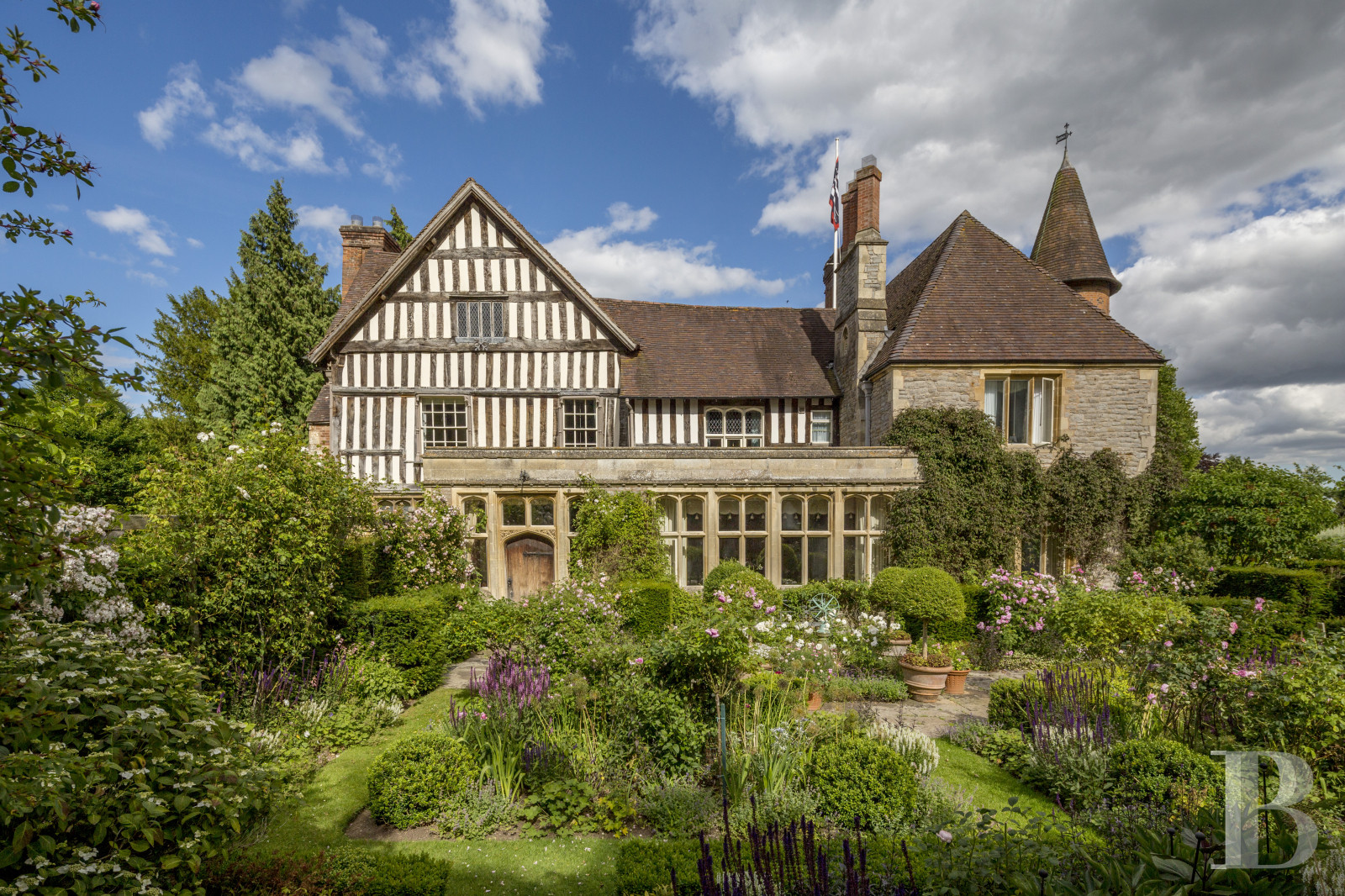 une demeure médiévale issue d'un prieuré du 12e s., avec jardins victoriens et quelque 15 ha de parc face à la vallée de la Severn