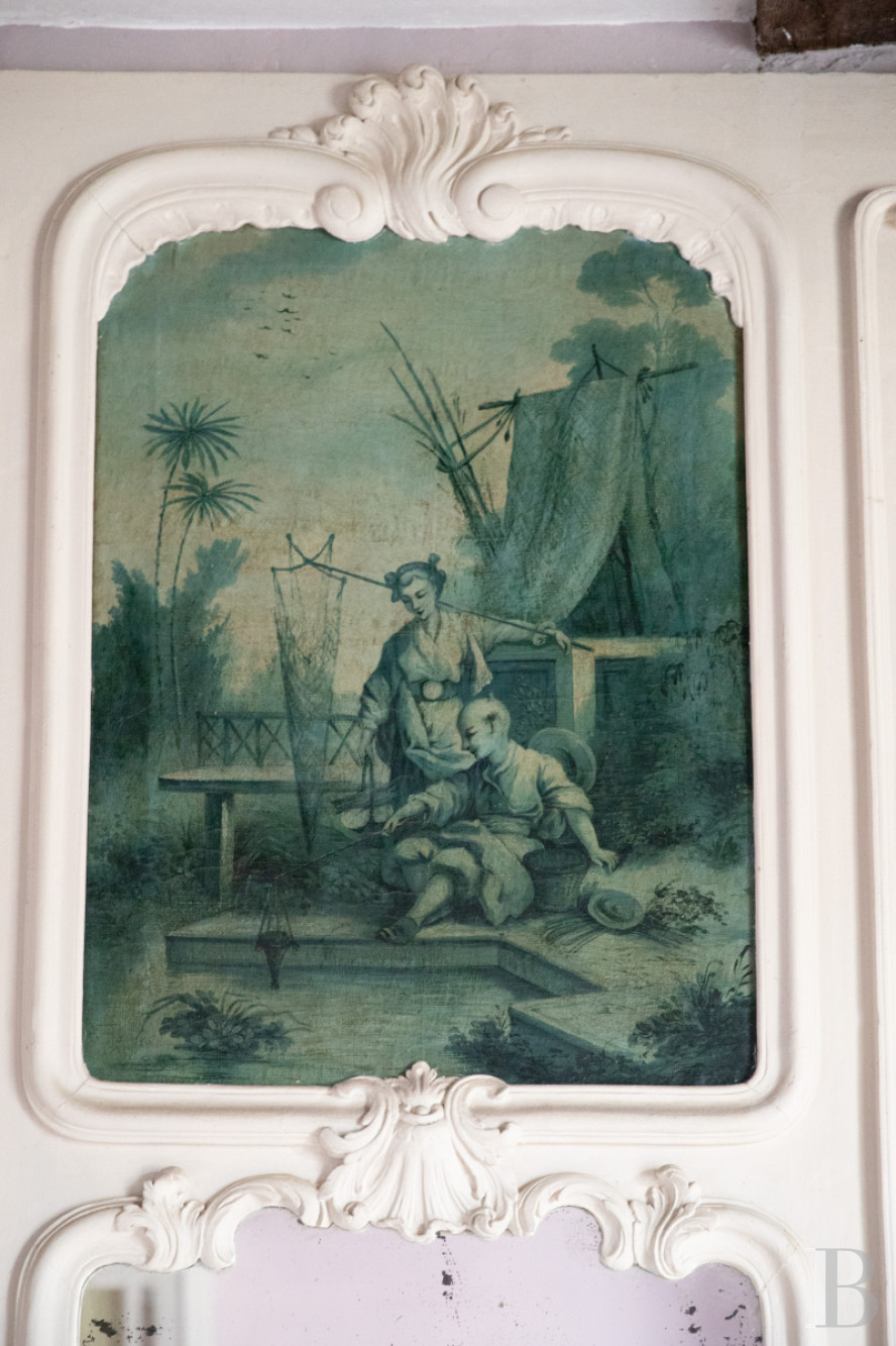 Un palier donne accès à un couloir qui dessert des chambres de part et d'autre. D'un côté, une vaste chambre ouvre sur la rue. Elle est parquetée sous un plafond à poutres apparentes. De l'autre côté, s'étend une chambre avec une cheminée sculptée en calcaire blanc, qui supporte un trumeau aux moulures de style rocaille et à la peinture en grisaille. L'ensemble représente une scène de pêche orientale. Une dernière chambre, desservie par un second escalier en vis, ouvre sur l'étage de l'aile nord où se trouve une salle de bains, une chambre et des greniers.