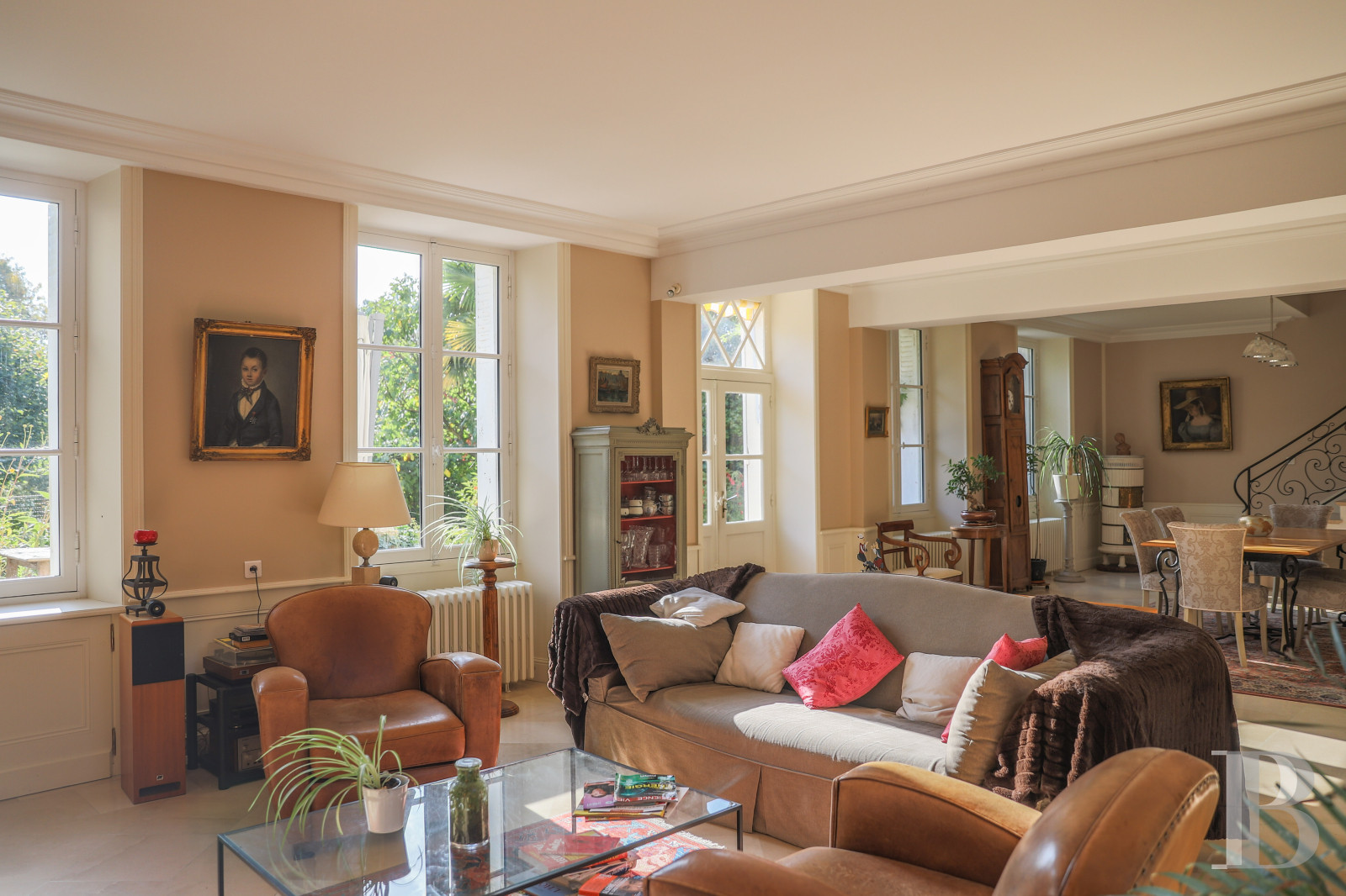 Dans un village ligérien pittoresque, à 30 min d'Angers, une demeure élégante et bourgeoise, le long d'une rivière navigable. La maison, spacieuse et bien entretenue, est habitable sans travaux. La lumière s'y déverse avec générosité depuis les larges baies vitrées des pièces à vivre. Dans les chambres, la vue porte au loin sur la frondaison des arbres du parc et sur le clocher de l'église voisine, dont la haute silhouette rajoute encore à l'atmosphère authentique des lieux. En contrebas, un accès mène au chemin de halage, où un petit port de plaisance a été aménagé. L'idéal pour découvrir la région autrement, au fil de l'eau.