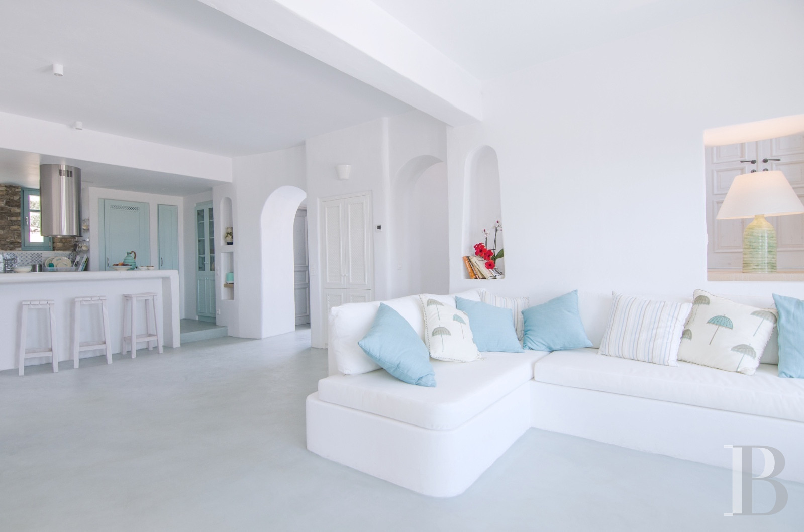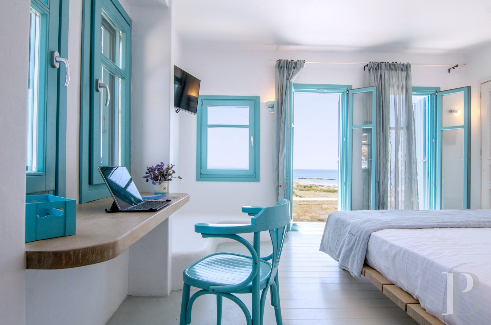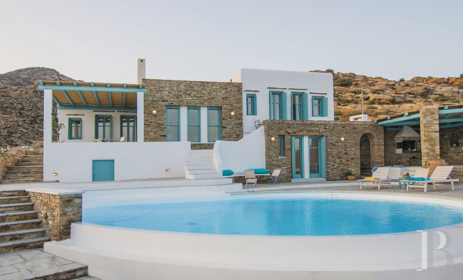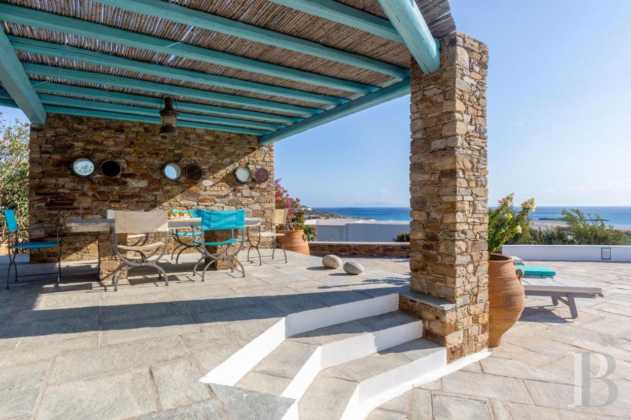 Ios, jadis escale des navigateurs antiques voguant entre Santorin et Paros, déploie au sud de son territoire rocheux la baie de Magganari, anse préservée où quelques villas s'accrochent aux pentes face à l'Égée. Édifiée sur 900 m² de terrain orienté plein sud, une demeure de 200 m² distribue ses trois chambres parentales avec salles de bain attenantes sur trois niveaux indépendants. Le jardin méditerranéen descend en terrasses vers les criques de Tripiti et Tris Ekklisies, accessibles à pied par les sentiers côtiers qui relient les plages désertes du sud insulaire. Une propriété où l'architecture cycladique contemporaine épouse le relief sans ostentation.