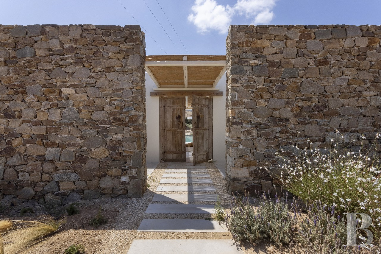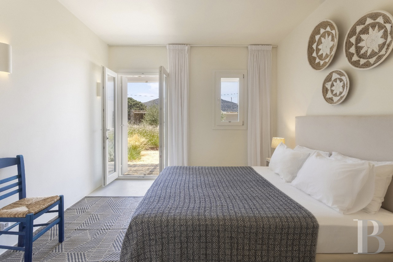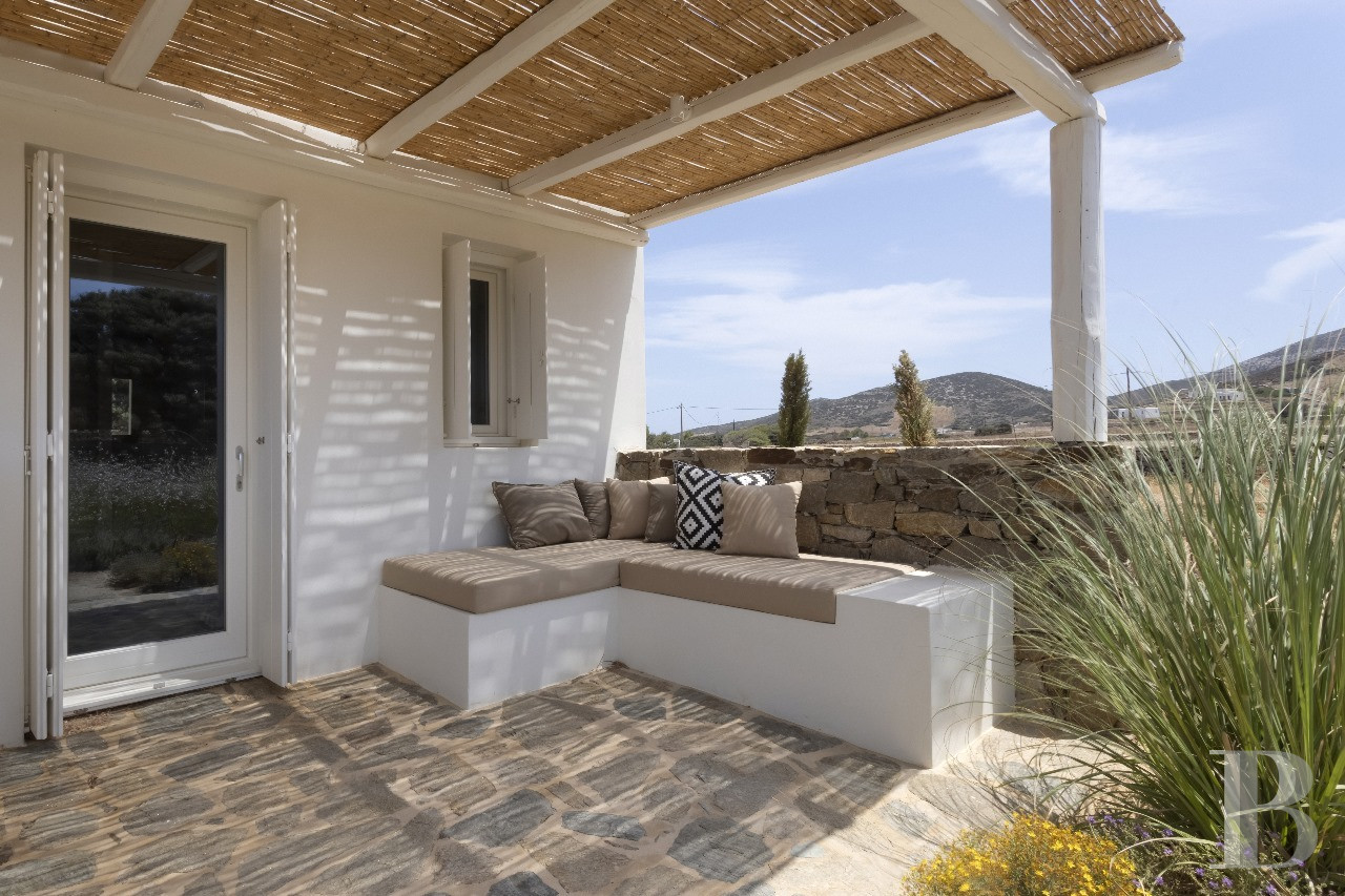 Archétype des demeures cycladiques conçues pour la contemplation et l'art de vivre insulaire, une villa s'inscrit dans un territoire où le silence et la lumière méditerranéenne structurent l'expérience du quotidien. Organisée en trois volumes indépendants totalisant 219 m², la propriété se déploie sur 4 633 m² de terrain paysagé, ponctuée d'espaces de repos, d'une zone de massage et de multiples terrasses de repas. Les trois volumes abritent respectivement la salle à manger avec une chambre, les espaces de jour avec cuisine ouverte, et trois chambres doubles indépendantes avec salles de bain attenantes. Un permis de construire valide autorise l'édification d'une suite supplémentaire avec terrasse panoramique. Une propriété conjuguant intimité et tranquillité insulaire, dans l'un des territoires les mieux préservés des Cyclades, où Antiparos cultive depuis des décennies un art de vivre discret.