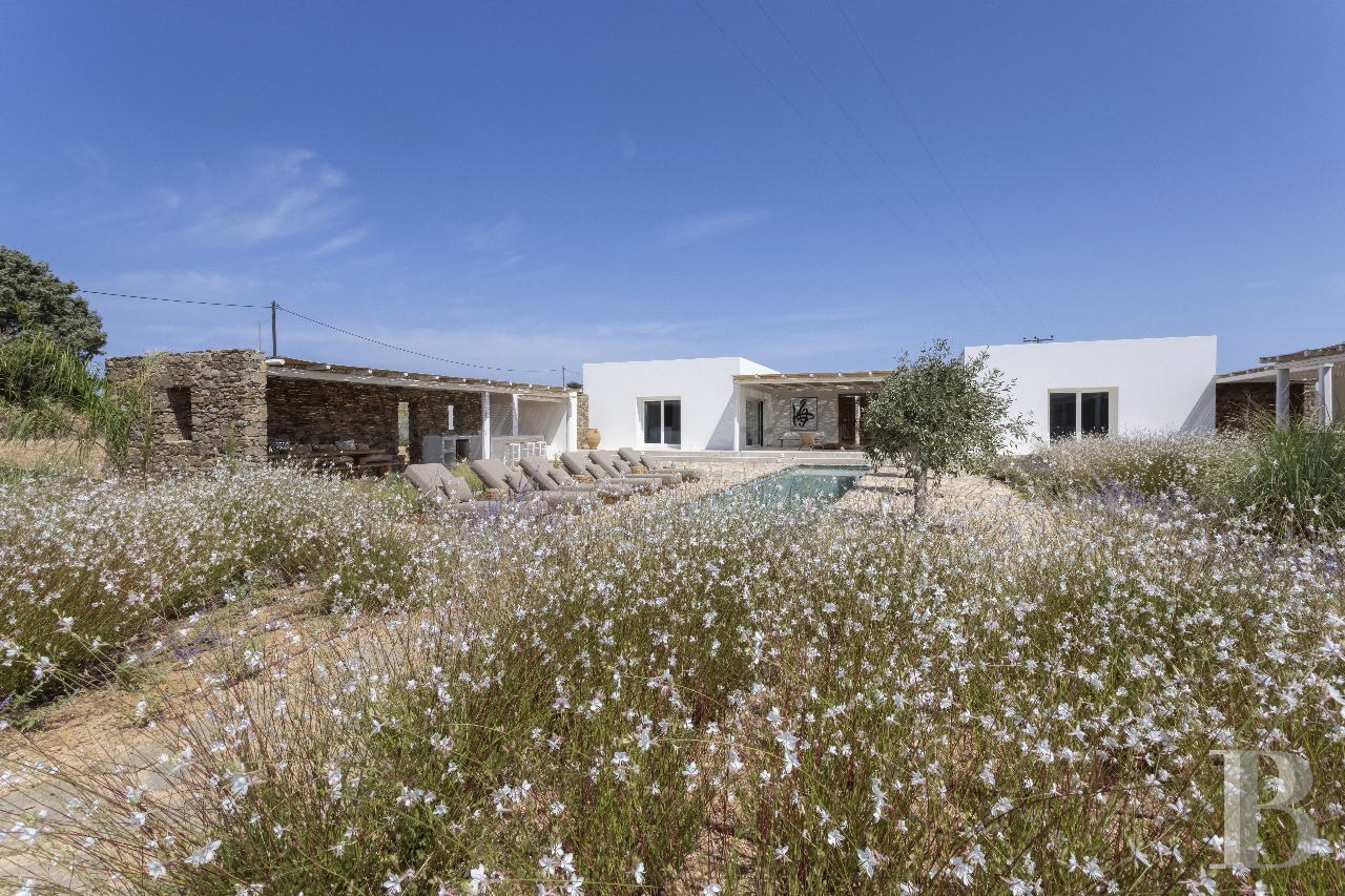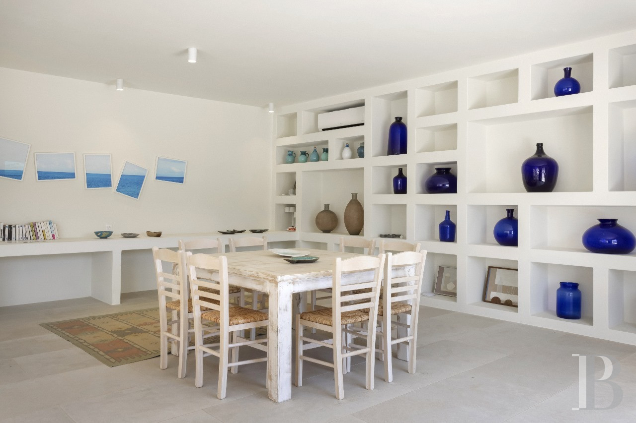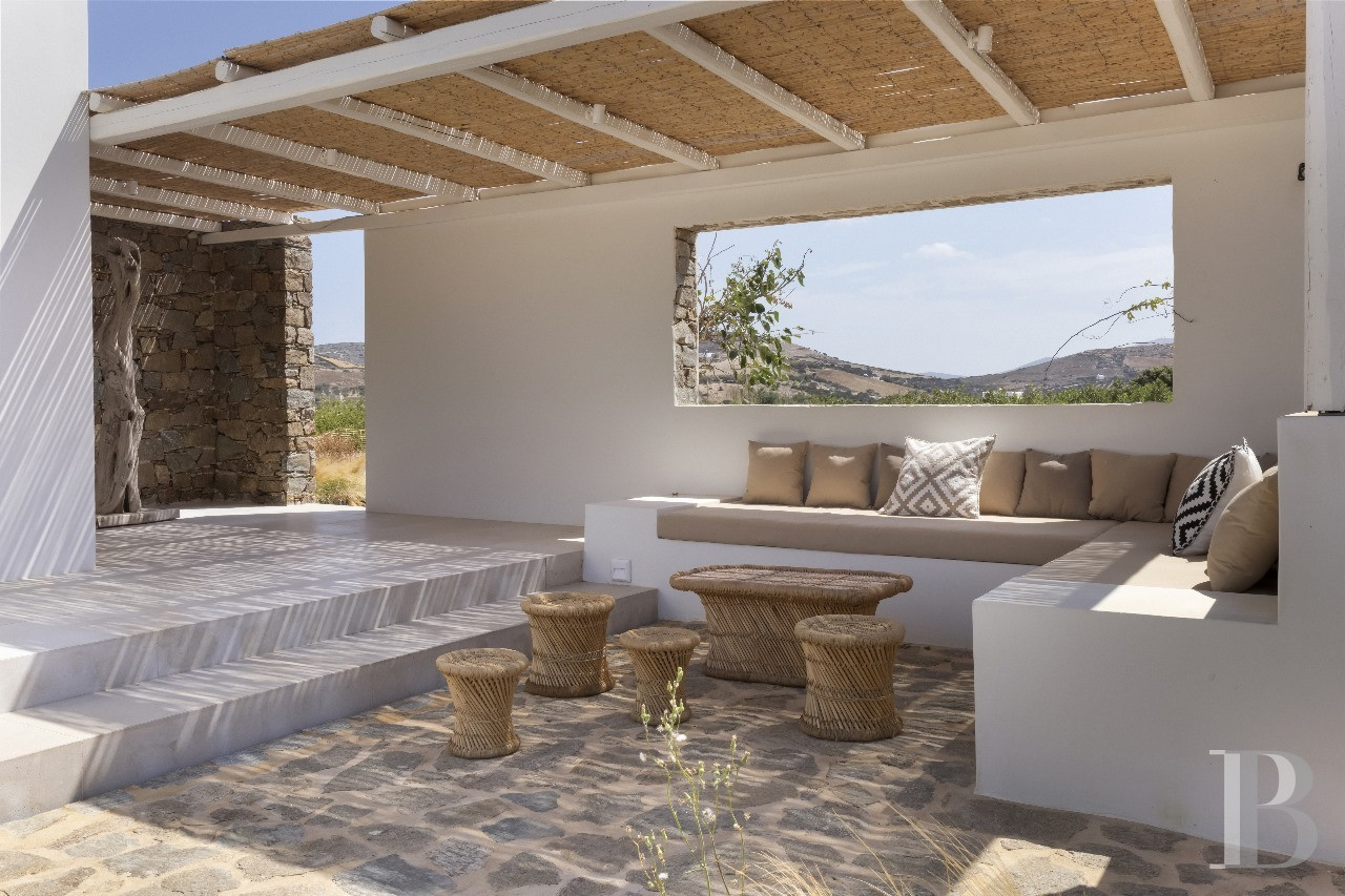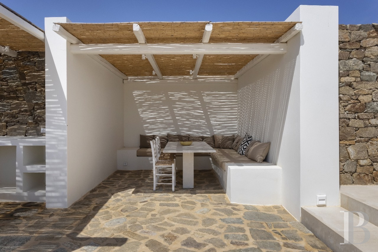 Archétype des demeures cycladiques conçues pour la contemplation et l'art de vivre insulaire, une villa s'inscrit dans un territoire où le silence et la lumière méditerranéenne structurent l'expérience du quotidien. Organisée en trois volumes indépendants totalisant 219 m², la propriété se déploie sur 4 633 m² de terrain paysagé, ponctuée d'espaces de repos, d'une zone de massage et de multiples terrasses de repas. Les trois volumes abritent respectivement la salle à manger avec une chambre, les espaces de jour avec cuisine ouverte, et trois chambres doubles indépendantes avec salles de bain attenantes. Un permis de construire valide autorise l'édification d'une suite supplémentaire avec terrasse panoramique. Une propriété conjuguant intimité et tranquillité insulaire, dans l'un des territoires les mieux préservés des Cyclades, où Antiparos cultive depuis des décennies un art de vivre discret.
