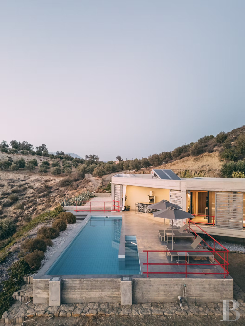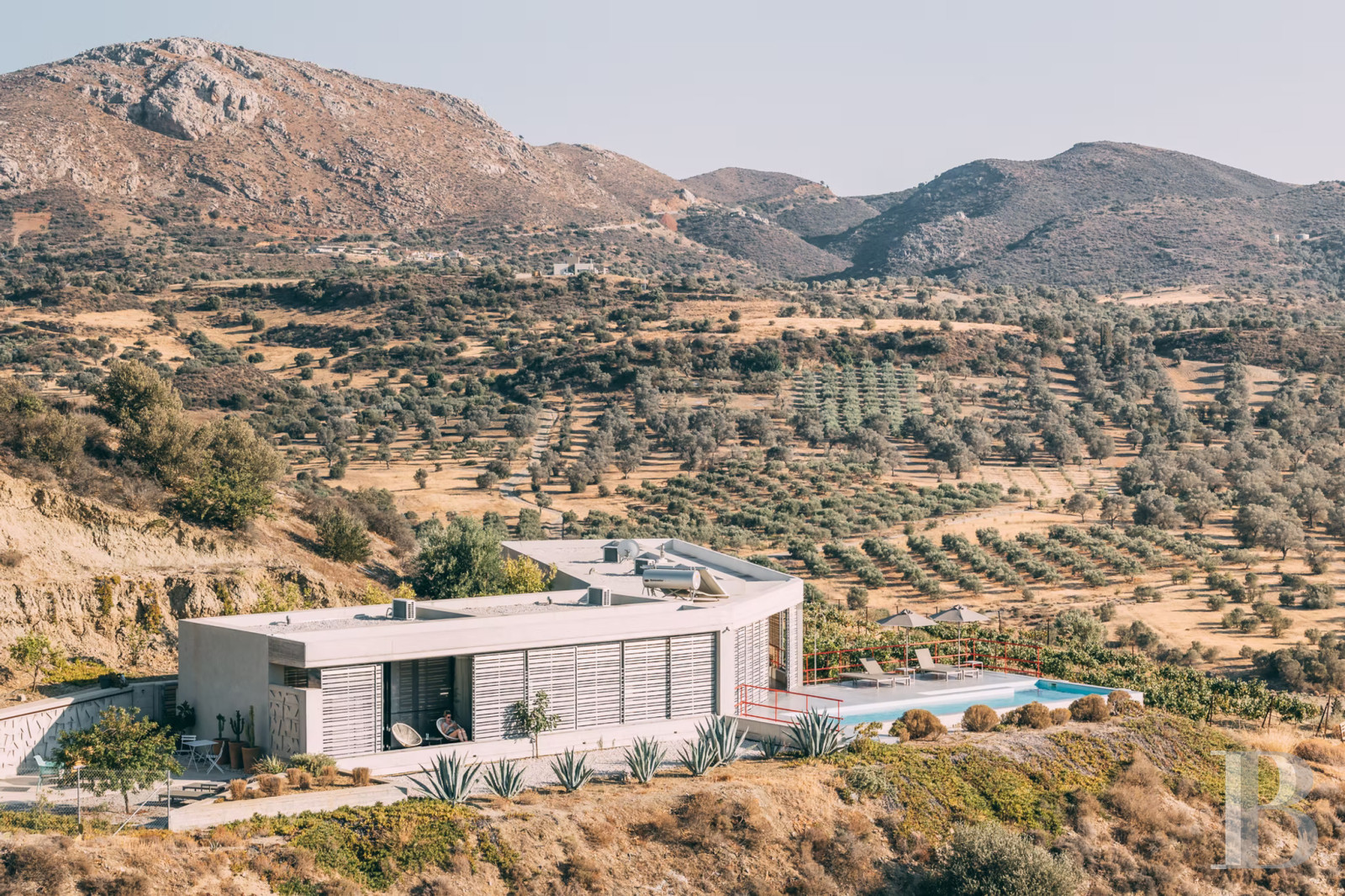 Une villa où la vie s'organise entre oliveraie centenaire et mer de Libye aperçue depuis les terrasses. Les matins débutent par une promenade dans le domaine et les après-midi se prolongent autour de la piscine où l'eau capte les reflets des montagnes environnantes. Le soir venu, le silence crétois n'est troublé que par le vent dans les oliviers et les conversations qui s'étirent. Sivas, village traditionnel du sud crétois accessible à 500 mètres seulement, maintient commerces, tavernes et vie communautaire préservée. La distribution architecturale en deux ailes distinctes permet d'accueillir famille étendue ou de générer revenus locatifs tout en préservant intimité. Le terrain généreux de 6 162 m² planté de vignes et d'essences méditerranéennes offrent une flexibilité unique dans un territoire crétois qui a su maintenir authenticité agricole et traditions insulaires, loin des développements touristiques qui ont transformé les côtes nord de l'île.