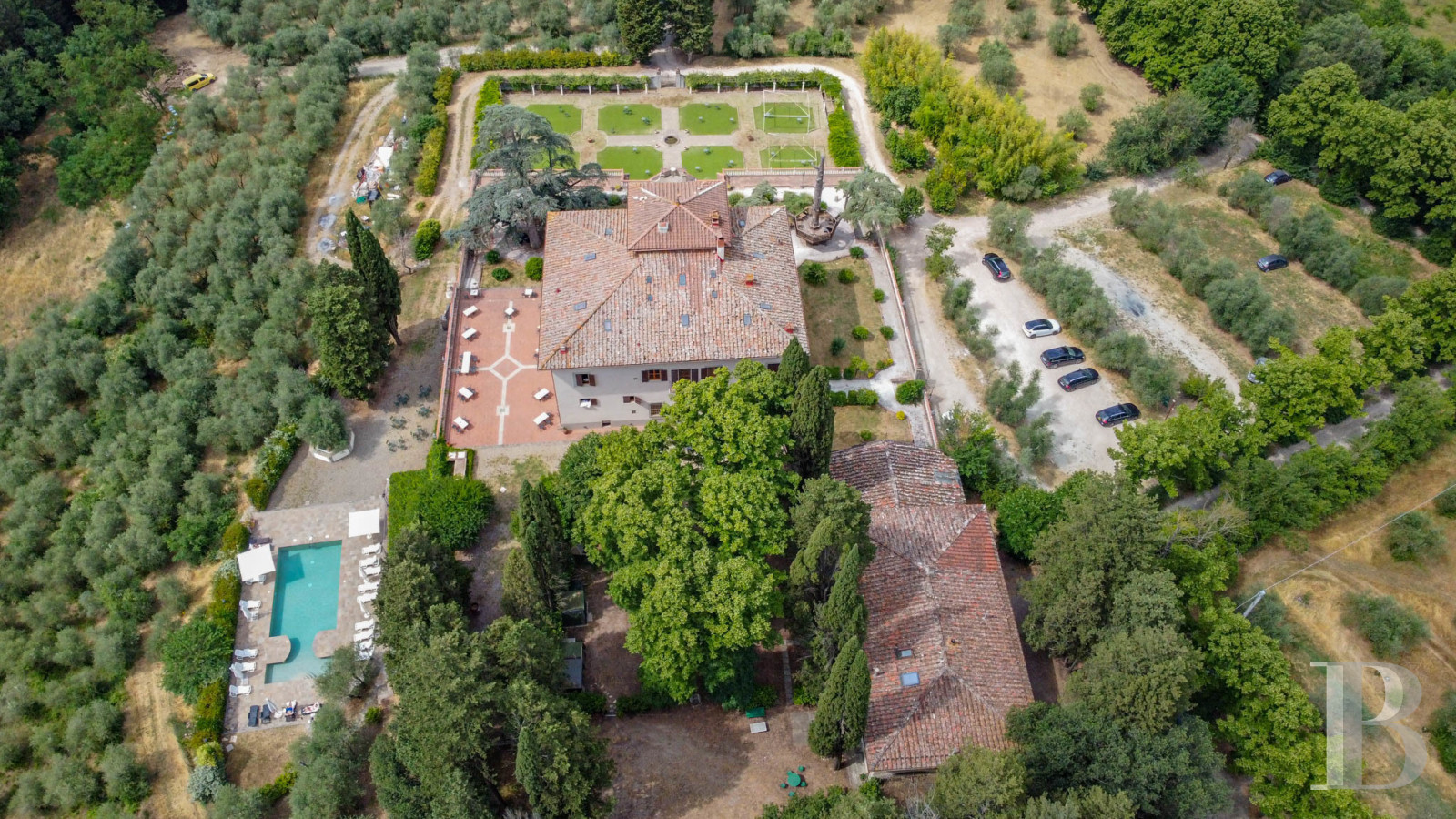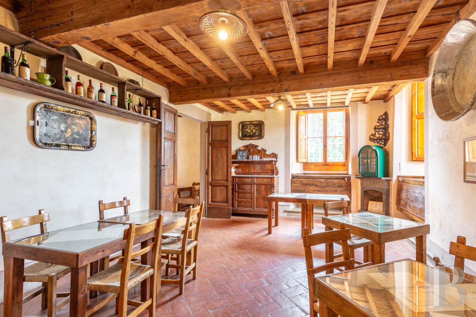 Une villa dont l'architecture témoigne d'un passé aristocratique. Les volumes intérieurs ont retrouvé leur clarté, les chambres conservent leurs éléments de décors, tandis que le jardin à l'italienne ordonne l'espace extérieur autour de la piscine et de l'oliveraie environnante. Les anciennes caves abritent désormais un espace dédié au bien-être, prolongeant la vocation d'accueil des lieux. Un restaurant permet de recevoir dans la continuité de la tradition florentine. L'ensemble forme une propriété cohérente où chaque élément trouve sa place sans ostentation. Entre résidence privée et maison d'hôtes, une villa qui réunit les conditions d'une vie toscane où le patrimoine bâti dialogue avec un environnement préservé, propice aussi bien à la vie familiale qu'à l'activité hôtelière de qualité.