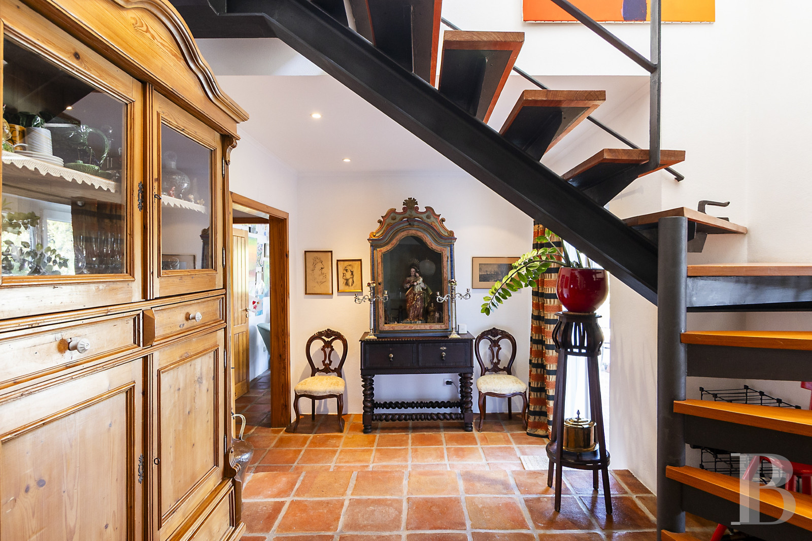 Les matins commencent sur le balcon, face au parcours qui s'étire jusqu'à la Serra da Arrábida. Une villa de 258 m² dans le domaine Quinta do Peru, à Azeitão, permet cette vie partagée entre golf et océan. Lisbonne reste à trente minutes pour le travail, Sesimbra à cinq pour les baignades. La maison respire sur deux niveaux et quatre chambres, chacune avec son espace propre. Les repas se prennent dans la cuisine ou la salle à manger selon l'heure, les soirées d'hiver près de la cheminée. L'été file entre piscine d'eau salée et jardin irrigué, les après-midi au golf ou sur les plages d'Arrábida aux eaux claires. La mezzanine accueille les lectures, le travail à distance, les jeux d'enfants. Garder un pied à Lisbonne sans y rester : voilà ce que permet cette adresse.