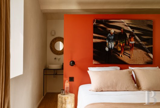 Les cinq chambres d'hôtes de 22 à 42 m2, se trouvent dans le mas principal. Chacune dispose d'un un accès particulier extérieur et possède sa salle de bains attenante ou séparée. Pour une expérience en pleine nature nous proposons une tente de 20 m2 posée à l'écart du mas face au mont Ventoux, avec la même literie king size que dans les chambres, une douche et des toilettes sèches extérieures : le glamping dans la garigue... Photos Mister Tripper®