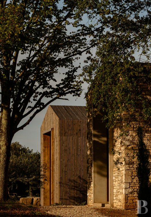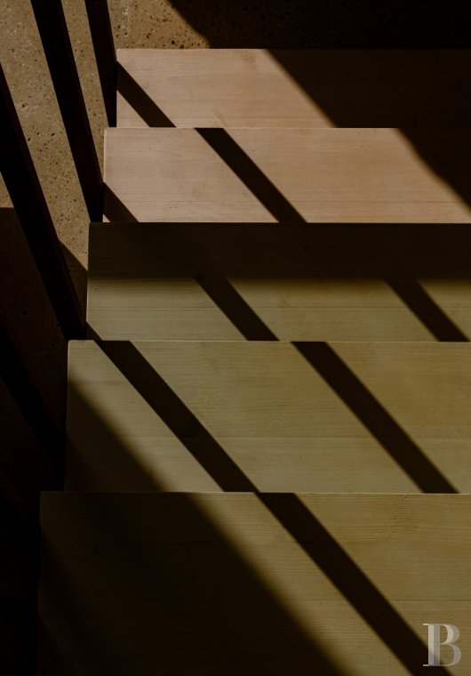Notre mas est une simple ferme typique de la région : une architecture massive faite de pierres dorées et posée à même la roche. Les petites ouvertures, pour préserver la maison de la chaleur de l'été et des froids parfois rigoureux de l'hiver, ont été conservées, mais nous avons apporté une touche de modernité en pratiquant à quelques endroits de larges baies vitrées pour faire entrer la lumière et ainsi ouvrir la vue sur les grands espaces de la nature qui nous entoure. Par ailleurs l'utilisation du béton et de l'acier Corten, matériaux simples et brutes, a permis à la maison de retrouver une nouvelle jeunesse ancrée dans notre temps et qui s'harmonise parfaitement avec la pierre de la région.