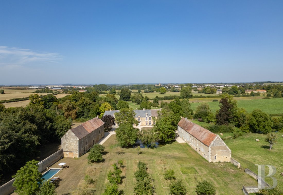 Dans le Calvados, au nord-est de Falaise, un château et ses dépendances dans un parc clos de murs