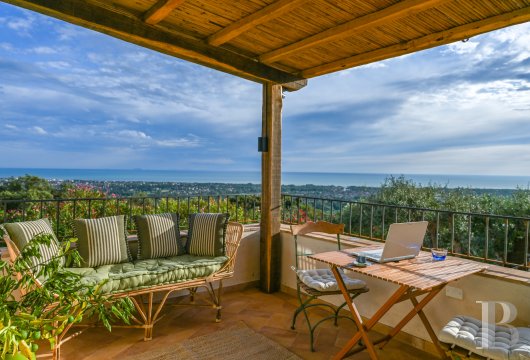 C'est une grande bâtisse toscane sobre et typique de la région et des années 1950. L'environnement était alors composé principalement de terres agricoles en bord de mer, d’où la rareté de bâtisses d’exception. Elle ressemble ainsi à beaucoup d’autres ici, même si elle est plus imposante, car elle était autrefois destinée à des familles qui exploitaient à la fois la vigne et des champs d’oliviers. L’habitation principale, d'une surface de 280 m², s’agence sur deux niveaux et se déploie sur un terrain composé de restanques.