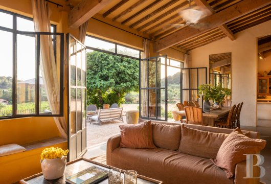 Au cœur du vignoble de Bandol, l’ancien chai du 17e siècle a pris désormais l’allure d’une bastide vouée à la villégiature. Comme souvent en ces terres du Sud, tout est aménagé afin que les pièces s’ouvrent largement sur la nature et que les jardins soient considérés comme des espaces de vie supplémentaires. Au mas Saint Martin, tout est fluide, aérien, rien n’arrête le regard. Mais cela n’empêche pas d’y ressentir une atmosphère chaleureuse et intimiste, où se déploient jeux de lumière et de couleurs, combinaisons de matériaux et de styles, et une multitude de détails qui animent et personnalisent chaque recoin. Le même esprit règne dans les jardins, minutieusement agencés autour du bassin de nage, du terrain de pétanque et des restanques dominées par de vieux oliviers. À seulement quelques minutes des plages mais au calme de l’arrière-pays, les séjours ici ne peuvent que donner envie de les prolonger.