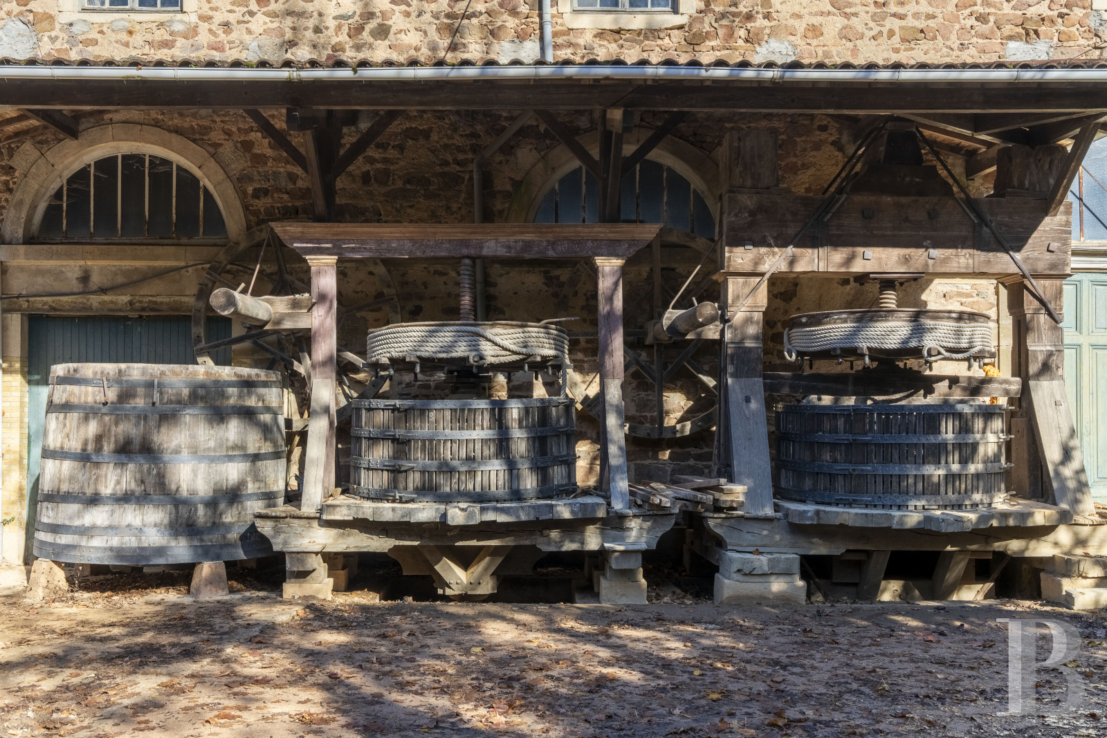 Espace initialement conçu pour la vinification et le stockage des vins du domaine, il est bâti suivant un plan rectangulaire simple et percé de trois grandes portes doubles en façade, ainsi que d'un portail d'accès en fond. Les murs sont en pierres apparentes et la toiture en tuiles canal pour sa plus grande partie. Deux grands pressoirs ont été conservés et protégés en extérieur. Un troisième, d'origine, est lui conservé à l'intérieur.La cave