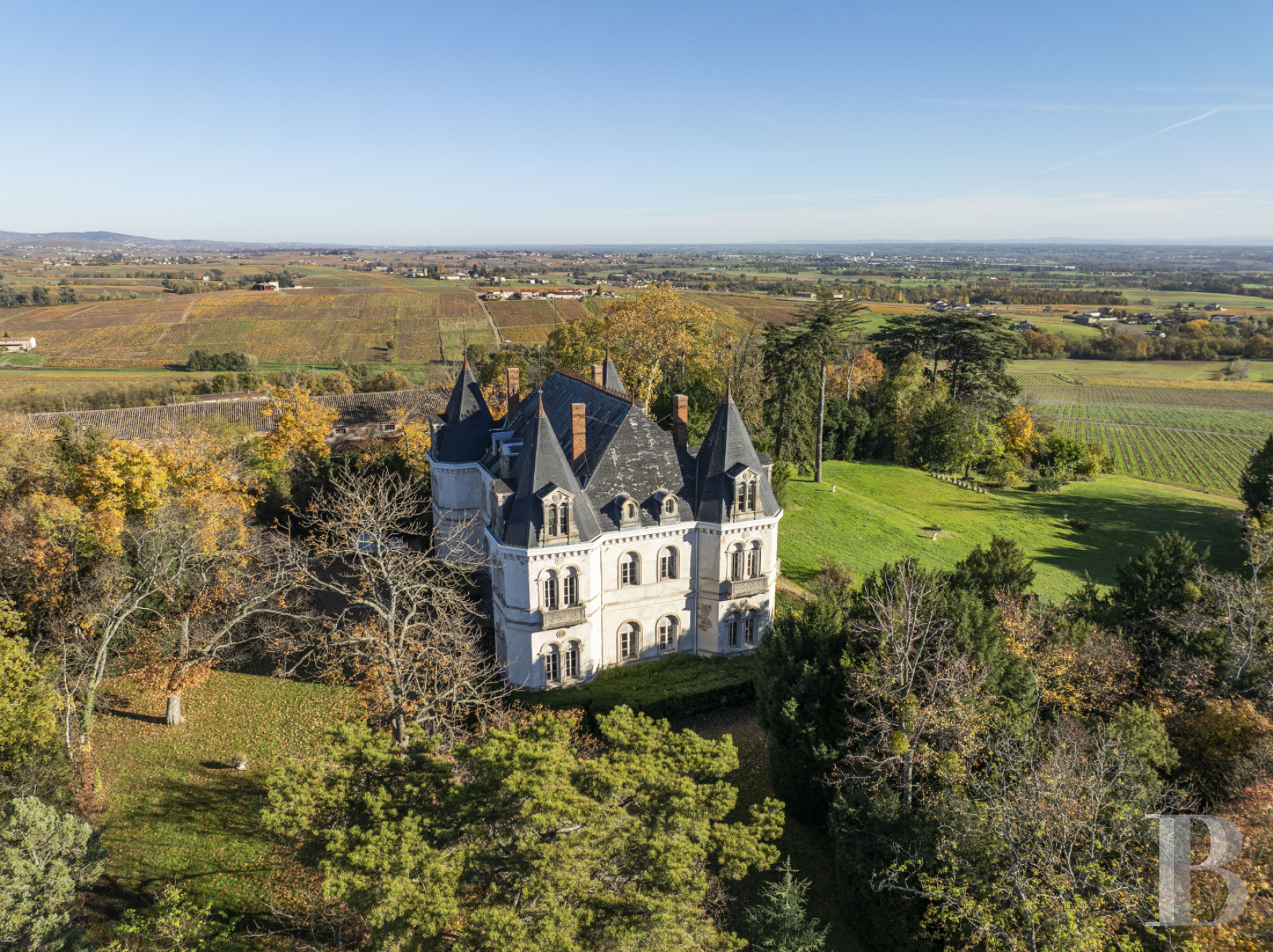 Une propriété unique, véritable réserve bucolique plantée d'arbres aux essences variées, porteurs de sérénité et de majesté. Le château, à la fois spacieux et à taille humaine, forme un accord subtil avec son environnement paysager aux multiples espaces de retrait. Les nombreuses pièces de réception lui assurent un caractère singulier, affirmé et divers. L'architecture intérieure est harmonieuse, les ouvertures des façades et balcons projettent le regard au loin, vers la chaîne des Alpes, les dépendances ne manquent pas, en particulier l'immense chai. Le domaine peut constituer la résidence d'une famille en quête d'espace, comme se prêter à un projet commercial. Dans tous les cas, l'ensemble saura satisfaire par son authenticité architecturale et décorative, et sa situation, à proximité des commodités des villages du beaujolais mais en pleine nature. Tout est là, rien à ajouter.