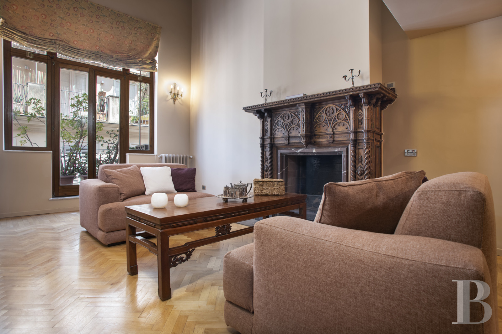 Un appartement qui porte la mémoire d'un atelier d'artiste. Au dernier niveau d'un immeuble romain, cet espace conserve les traces de sa vocation première : volumes généreux, plafonds voûtés en briques apparentes et hautes fenêtres qui diffusent une lumière changeante au fil des heures. Les pièces de réception, rehaussées de cheminées anciennes, s'ouvrent sur des chambres aux proportions harmonieuses. La terrasse, véritable jardin suspendu, offre un panorama rare sur les coupoles et campaniles de la ville éternelle. Une stratification d'époques et d'usages compose un ensemble singulier, entre héritage créatif et élégance contemporaine. Un lieu destiné à ceux qui recherchent une adresse unique, capable d'émouvoir par sa situation singulière et son caractère profondément ancré dans l'histoire romaine.