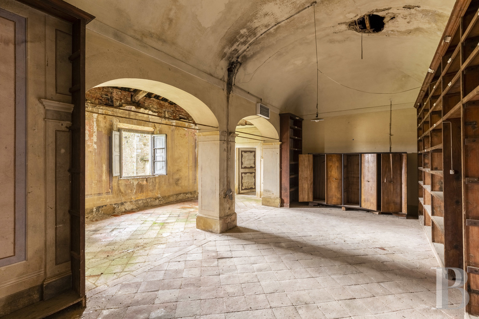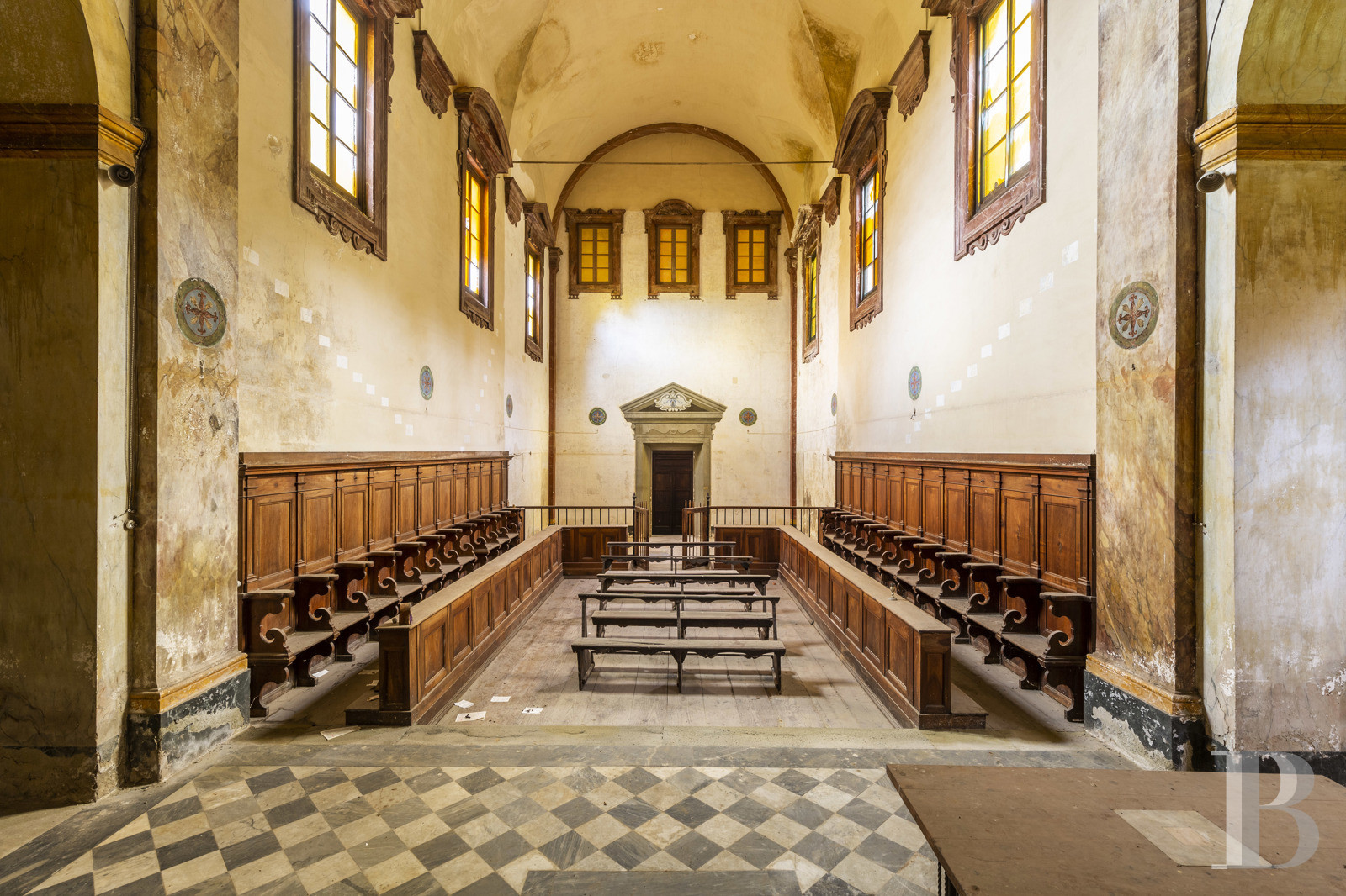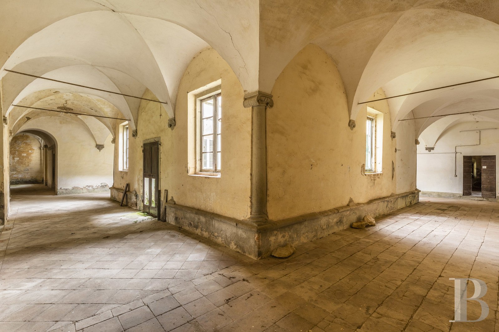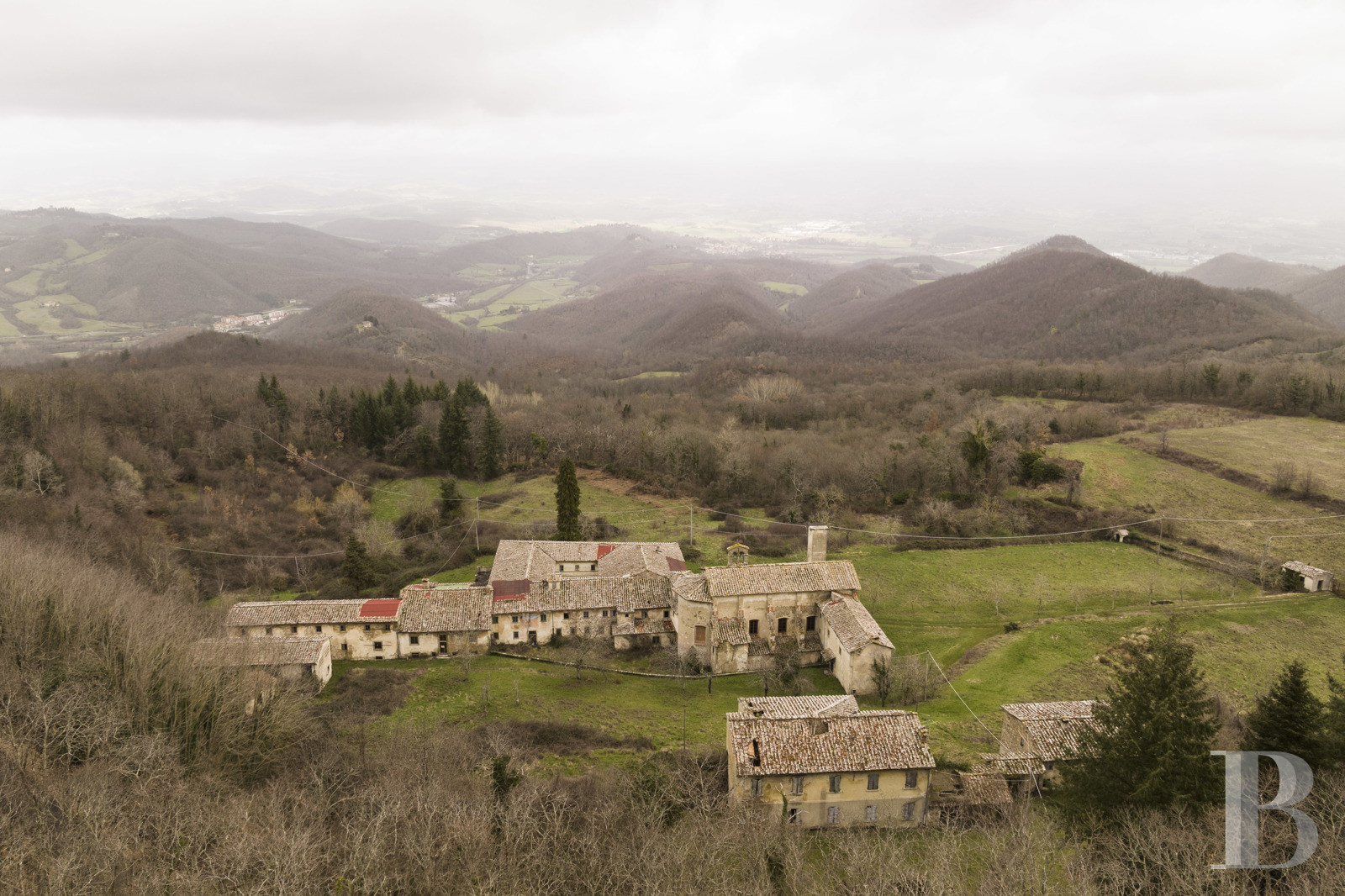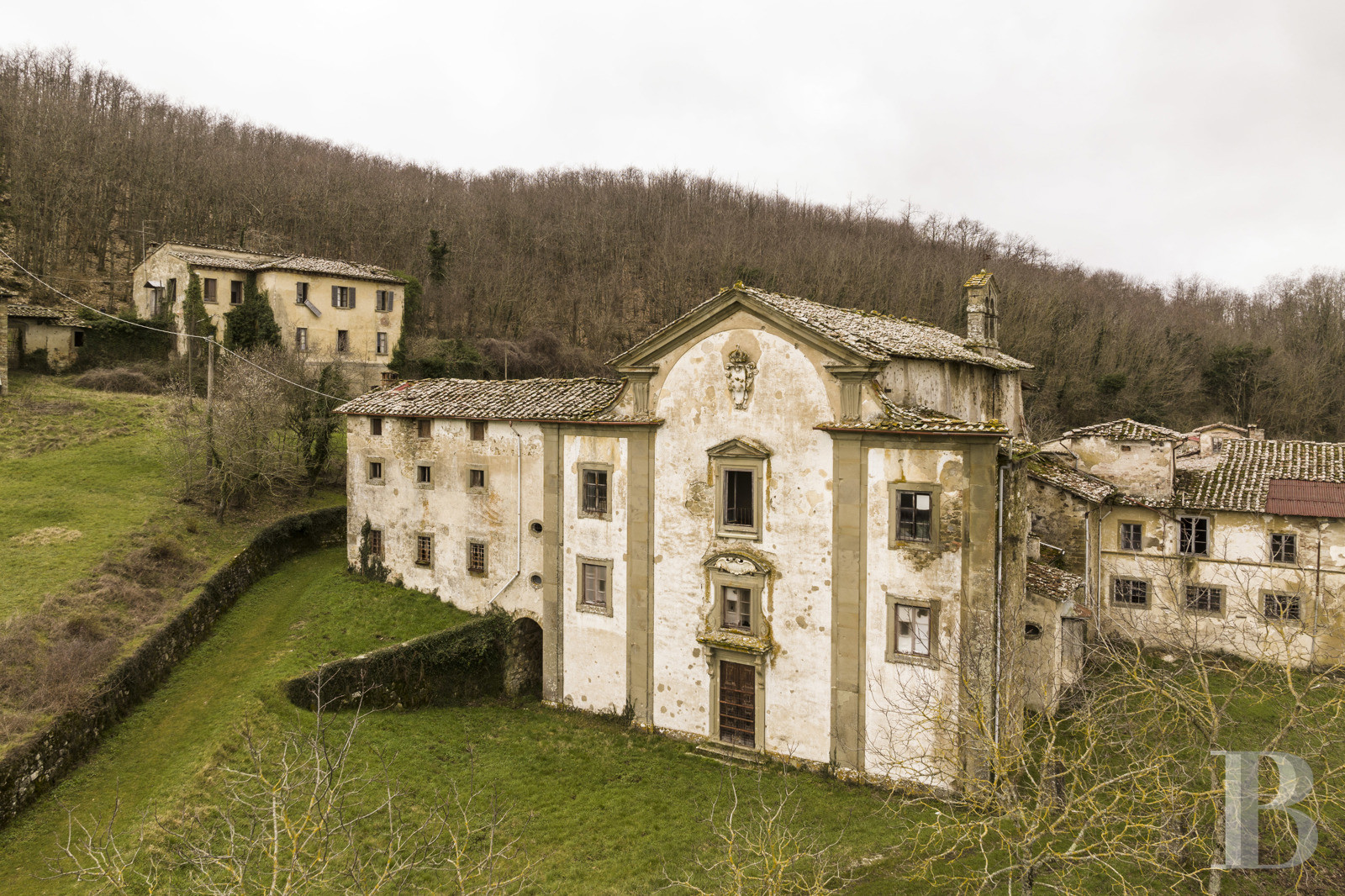 Mille ans d'histoire toscane se sont déposés ici, dans les pierres d'une abbaye médicéenne que le Mugello abrite depuis 1084. Les cloîtres du Quattrocento, la nef de l'église, les colonnes ouvragées : tout parle d'un temps où l'architecture servait l'élévation. Plus de 54 ha de terres vallonnées prolongent l'édifice, donnant sur la vallée un panorama que les moines contemplaient déjà. La Via degli Dei passe à proximité, rappelant que les lieux ont toujours accueilli le passage, la halte, la méditation. L'ampleur du bâti appelle une transformation ambitieuse – résidence, espace culturel ou refuge contemporain –, mais c'est précisément cette échelle qui en fait la puissance. Entre restauration et réinvention, entre mémoire monastique et projet de vie, l'abbaye attend celui qui saura conjuguer respect du patrimoine et audace du geste. Un lieu qui ne se visite pas : il se ressent.