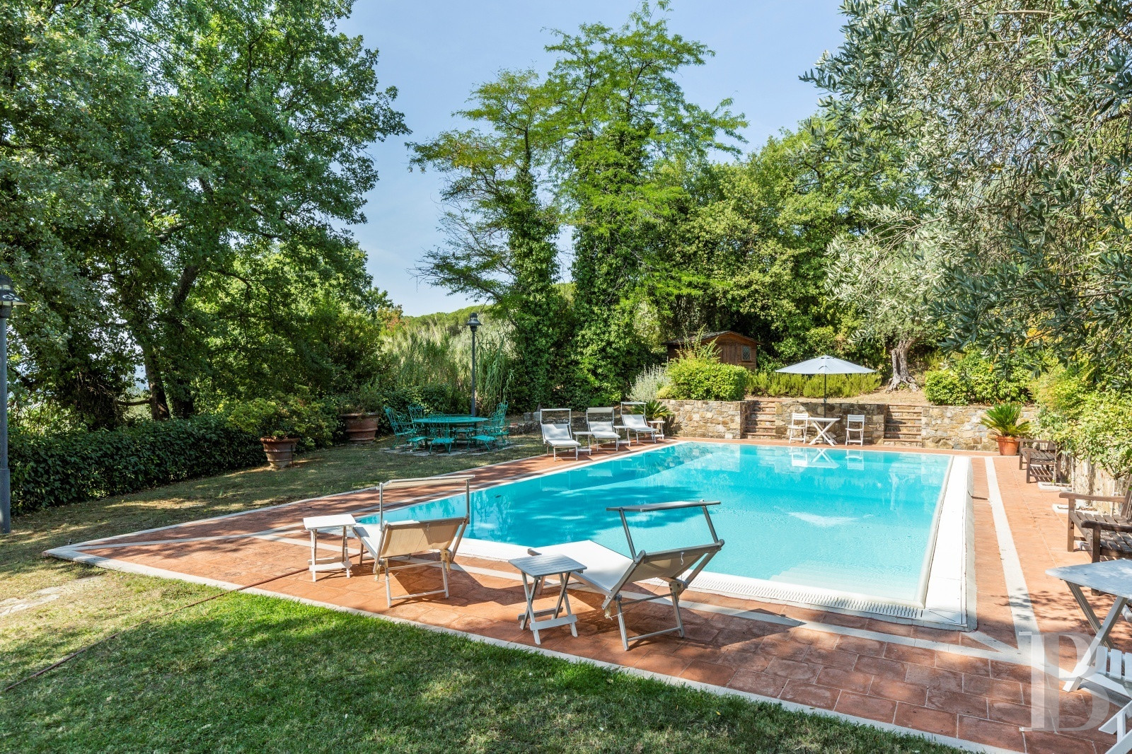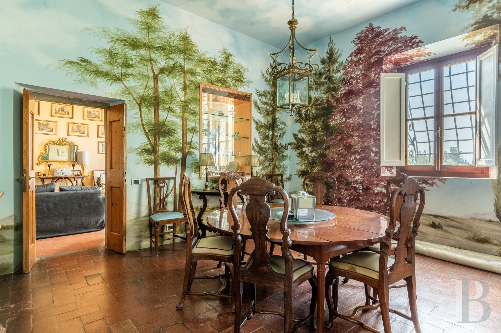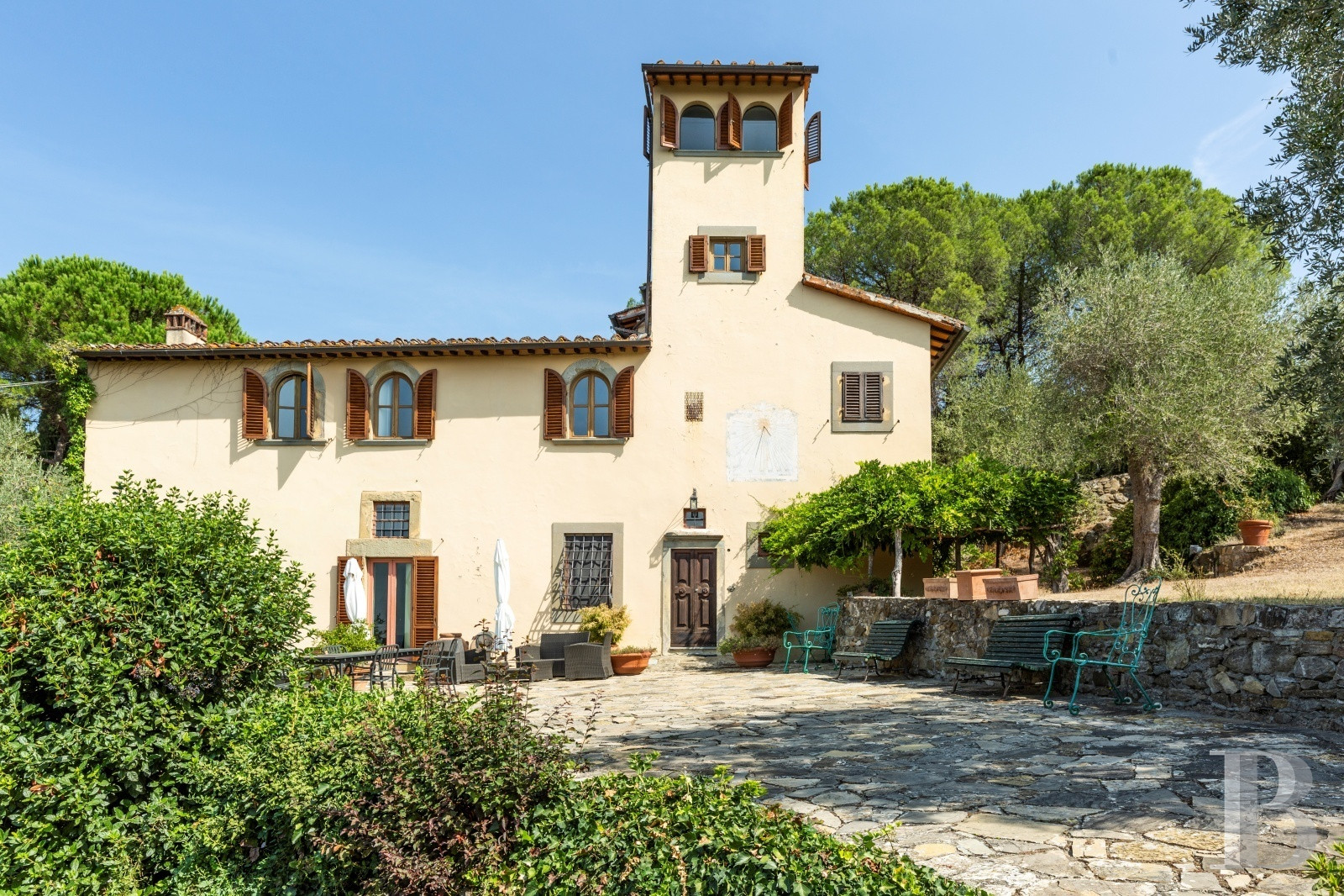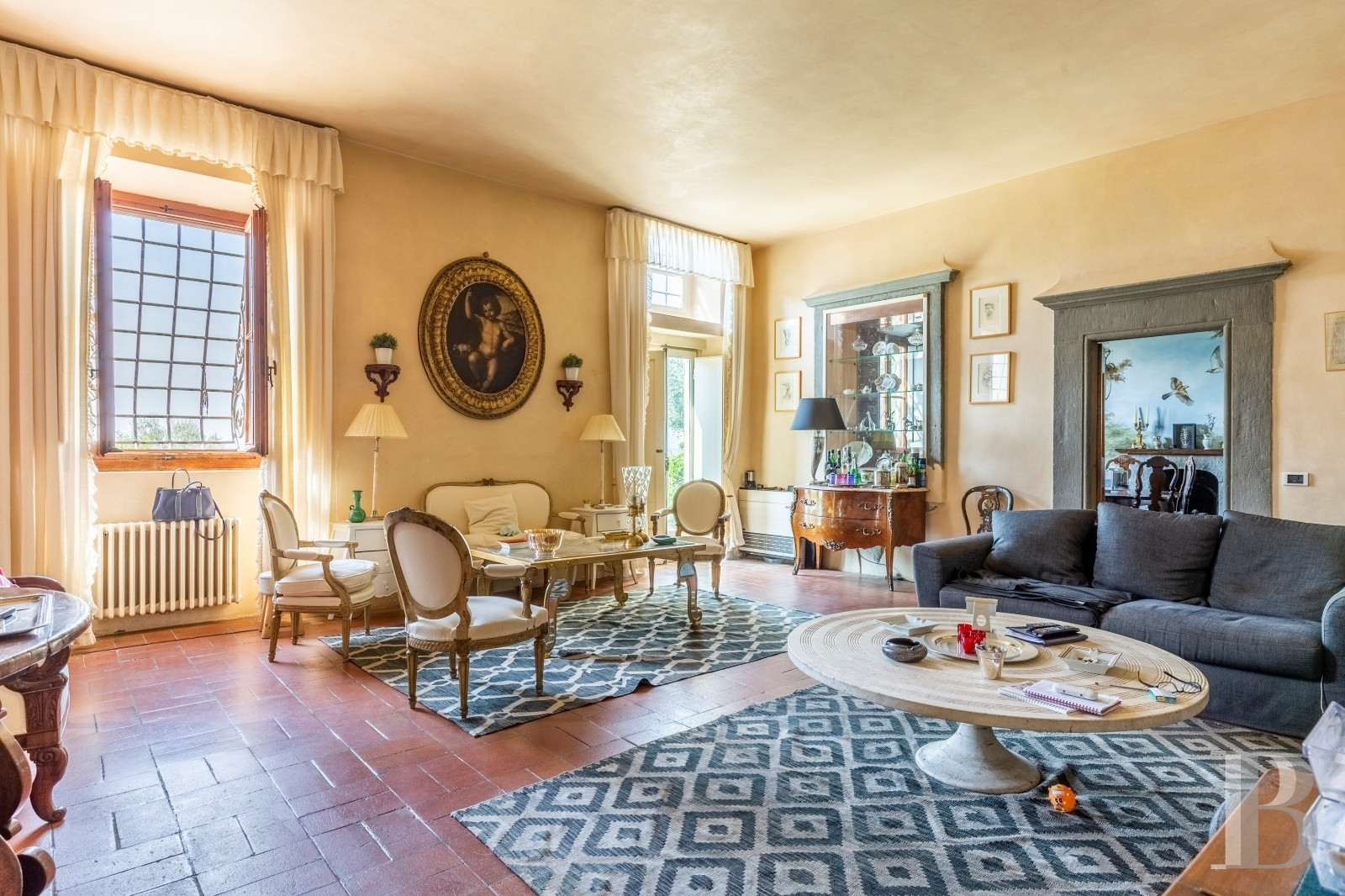 Pénétrer dans cette villa historique, c'est découvrir un lieu où passé et confort se conjuguent harmonieusement. La vue s'impose d'emblée : panoramique, elle embrasse Florence avec ses toits et monuments, jusqu'au Dôme qui se dresse à l'horizon. Un spectacle permanent, de l'aube aux dernières lueurs du jour. Dès le portail franchi, la quiétude environnante se fait sentir, portée par la nature et la prestance de la villa érigée sur la colline parmi oliviers et arbres fruitiers. Les intérieurs témoignent de leur époque : salons aux plafonds hauts ornés de poutres apparentes, cheminées d'origine, pièces lumineuses et spacieuses préservant l'authenticité toscane par leurs sols en terre cuite et détails architecturaux historiques. La petite tour offre des perspectives remarquables sur le paysage environnant. Le domaine de 5000 m² accueille un jardin soigné, une piscine et des oliviers caractéristiques de la campagne florentine. L'ensemble reflète un équilibre entre nature et architecture, histoire et fonctionnalité contemporaine. La villa, en excellent état, se prête aussi bien à une résidence principale qu'à une demeure secondaire de caractère.