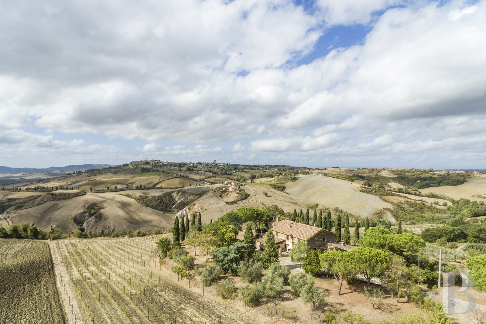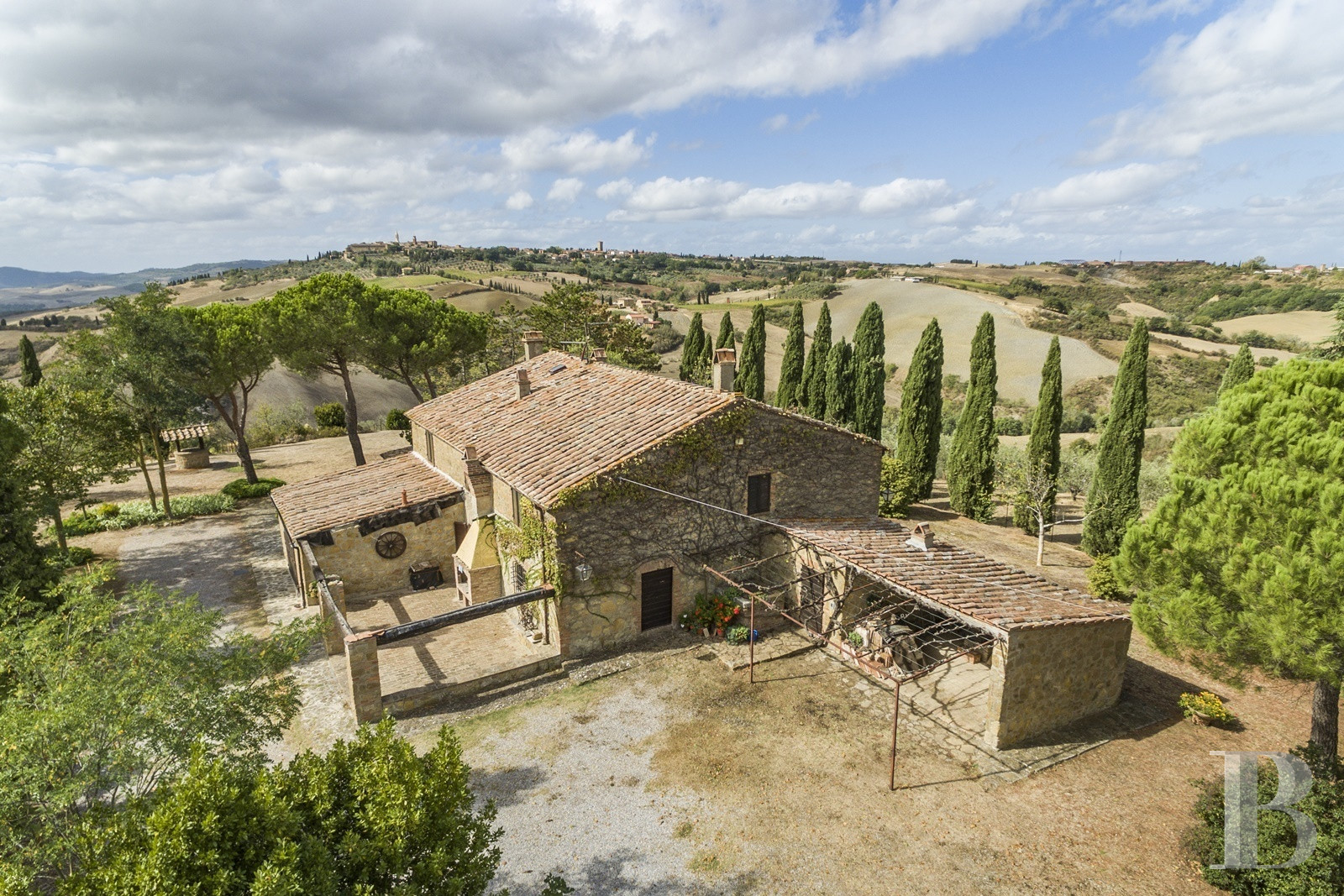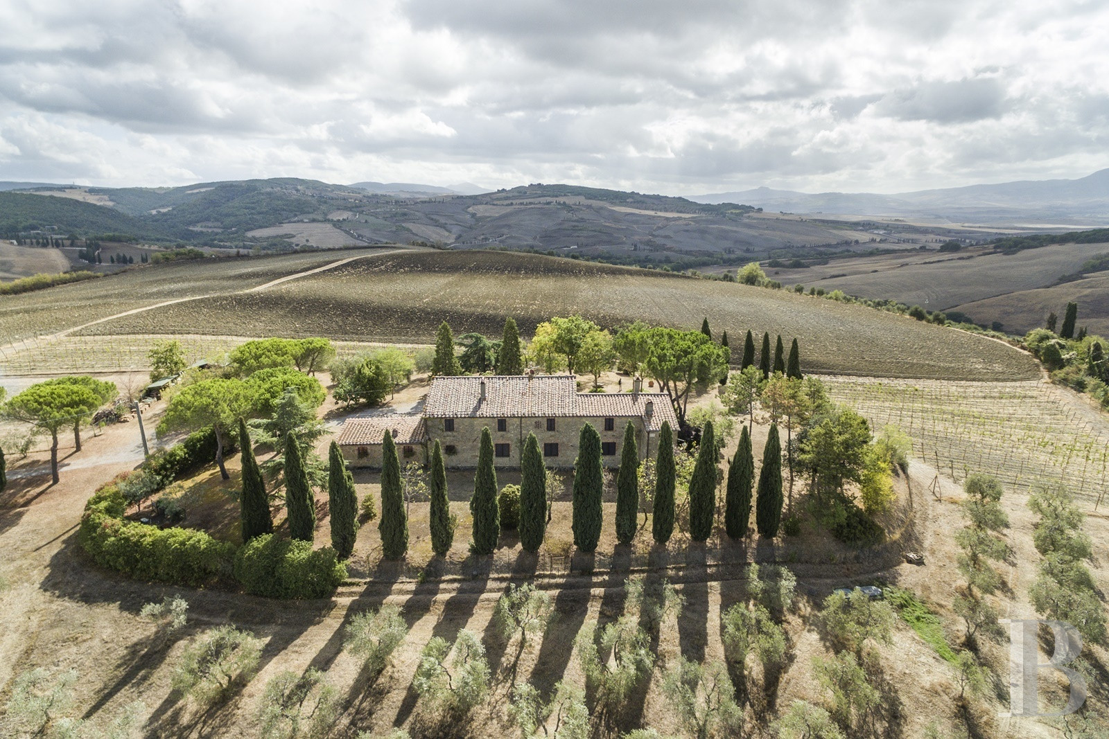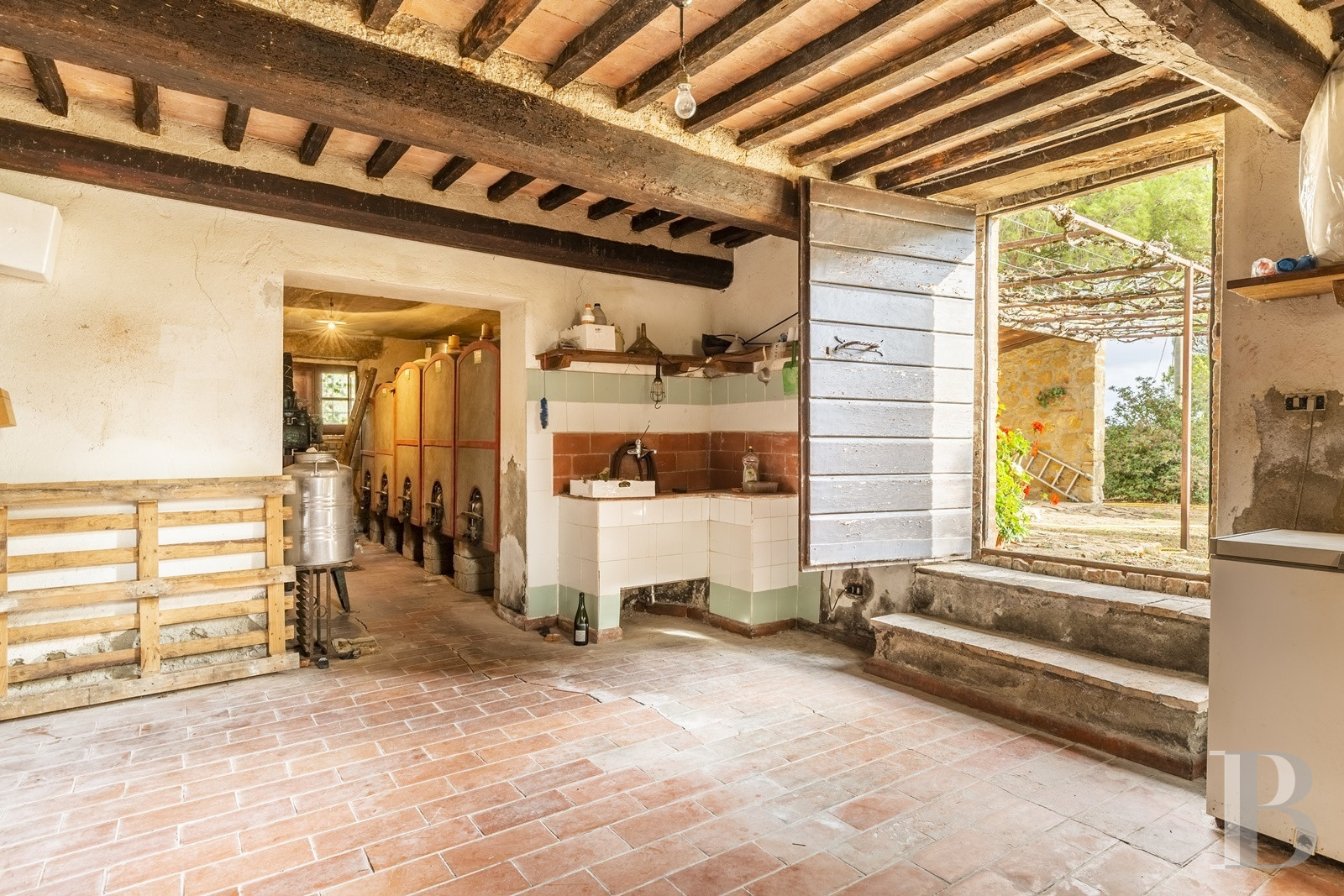 Les chemins qui mènent à la propriété traversent les collines du Val d'Orcia comme on franchit les siècles. Le temps semble s'être arrêté dans les années où l'on bâtissait pour durer. Le paysage alentour n'a guère changé depuis que l'Unesco l'a classé : cyprès alignés, vignes ordonnées, oliviers argentés sur les pentes douces. La demeure garde cette présence tranquille des bâtisses rurales toscanes : quatre cent soixante-dix mètres carrés répartis sur deux niveaux, murs épais qui ont traversé les saisons. Cinq hectares de terres cultivées l'entourent, vignes, oliviers et prairies témoins d'une activité agricole qui attend de reprendre vie. Le matériel reste sur place. Un nouveau souffle est nécessaire pour adapter le lieu aux exigences actuelles tout en préservant son caractère intemporel.