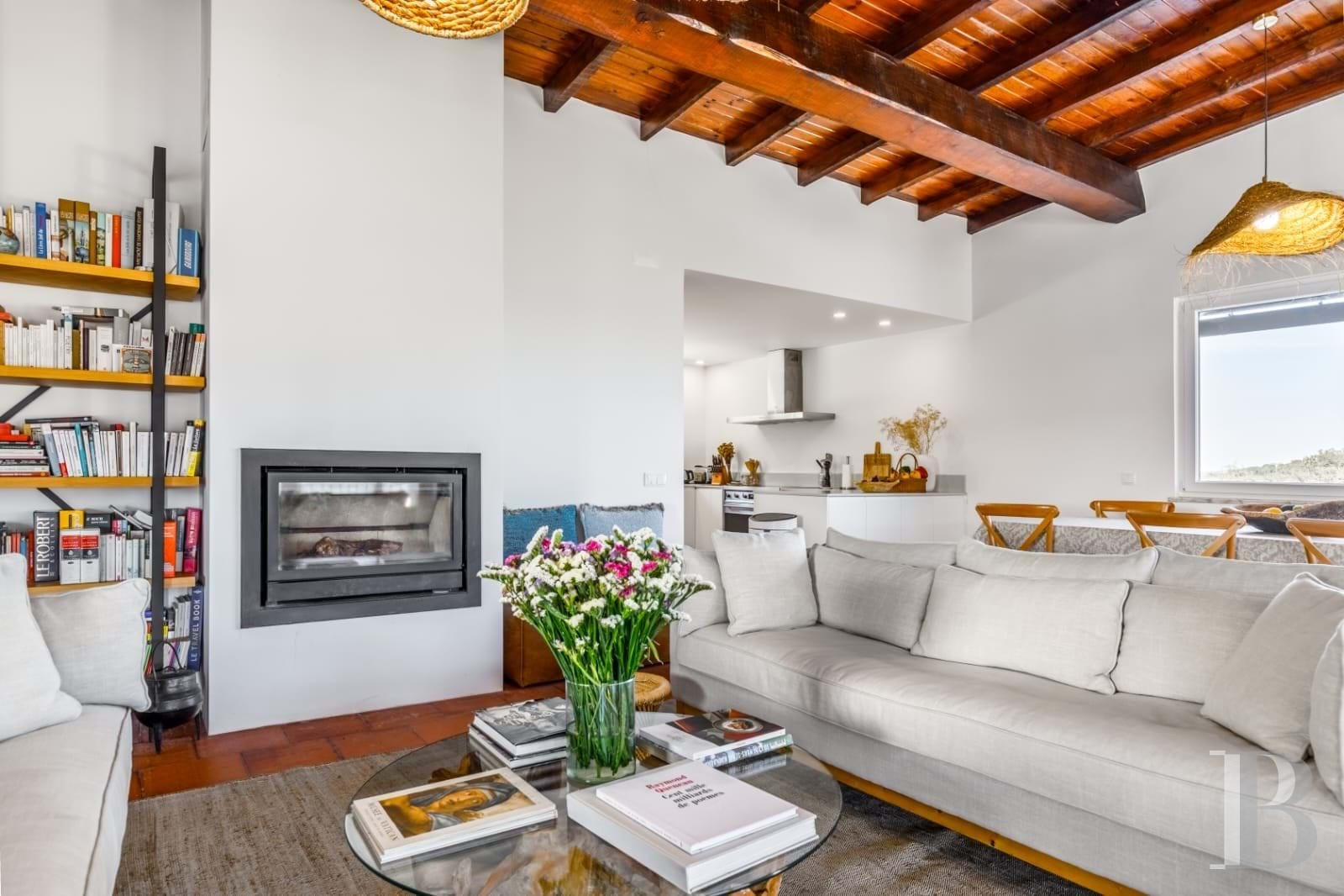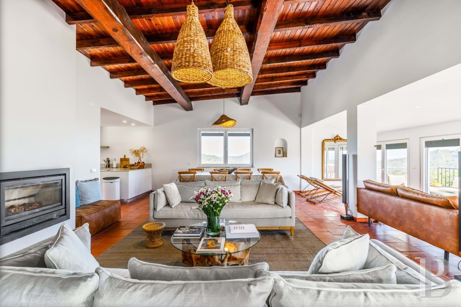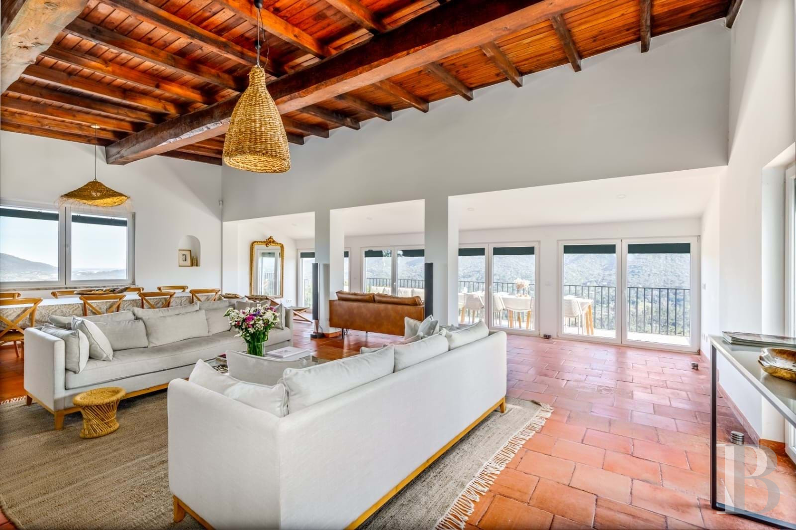 La Serra d'Arrábida dessine un horizon que peu de lieux permettent de contempler avec autant de force. Sur les hauteurs du parc naturel, à deux pas de Vila Nogueira de Azeitão, une construction récemment restaurée a été pensée pour capter la lumière et le paysage. Les travaux, conduits avec l'Institut de Conservation de la Nature et des Forêts, ont privilégié l'effacement : effacement du bâti dans la pente, effacement des frontières entre dedans et dehors. Les matériaux sobres, les lignes nettes et les ouvertures généreuses créent un équilibre entre retenue et amplitude. Entre les plages de la côte et les chemins de la Serra, à moins d'une heure de Lisbonne, un bien qui plaira par sa capacité à faire du panorama un élément d'architecture.