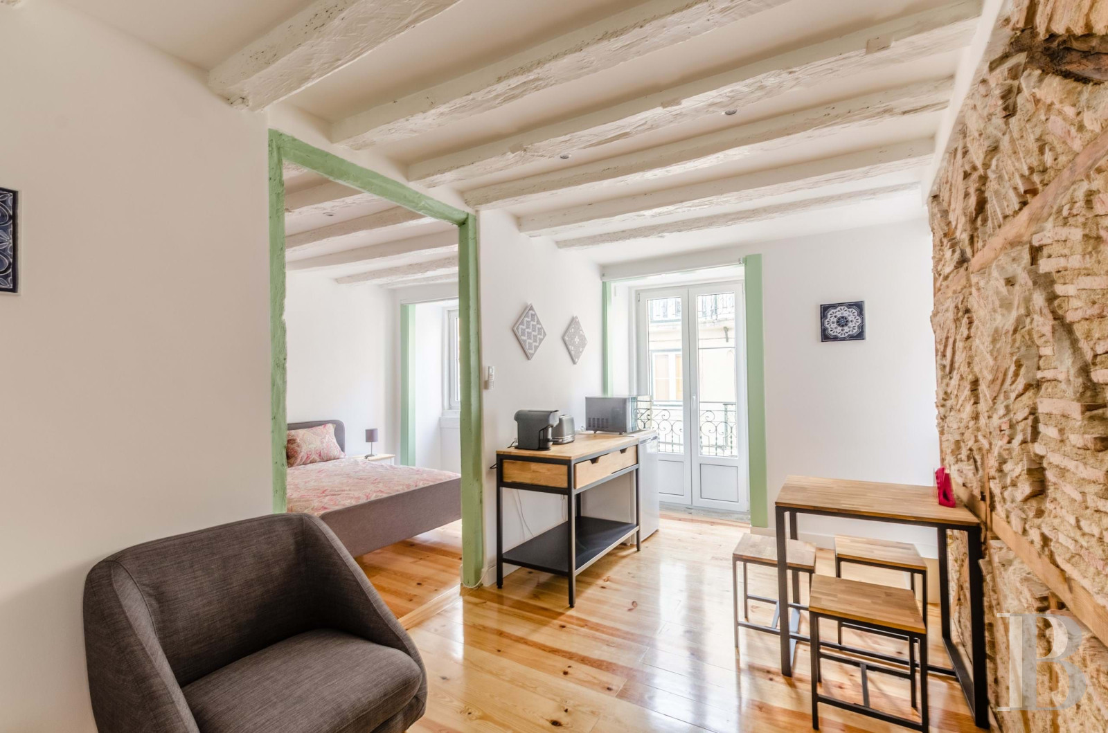 Il est des adresses où la ville se donne à voir dans son mouvement quotidien, et cet appartement au premier étage d'un immeuble ancien de Santa Catarina en fait partie. Deux chambres dont une suite, deux salles de bains en marbre, un balcon sur la rue. La lumière traverse les pièces. Le quartier s'étend entre Bairro Alto et Chiado, à quelques minutes du miradouro. Les rues pavées montent vers les hauteurs, bordées de cafés et de restaurants. Le soir, les maisons de fado ouvrent leurs portes, les terrasses se remplissent. L'appartement possède une licence d'hébergement local. Sa situation attire ceux qui souhaitent vivre au rythme de Lisbonne, dans un quartier où le patrimoine et la vie quotidienne se croisent à chaque coin de rue, là où la ville ancienne continue de battre.