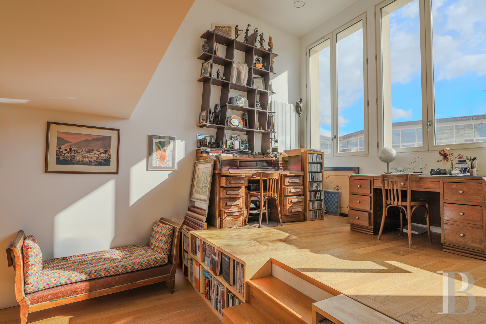 De son passé artisanal et ouvrier, la diversité qui caractérise le Village Paul-Bert en fait sa signature. Une atmosphère parisienne entre mondanité urbaine et ambiance bucolique qui attire familles et jeunes couples désireux de résider dans un environnement éclectique. Un appartement qui profite d’une situation à la fois centrale et paisible. La configuration en trois niveaux, la présence de quatre chambres et la double hauteur sous-plafond des espaces de vie en font un bien d’exception, adapté tant à une famille qu’à un amateur sensible aux architectures singulières qu'aux vastes volumes. Les deux terrasses en toiture, avec leur vue sur Paris, constituent une qualité remarquable pour le secteur. Un appartement d’artiste, habité et vivant, dont le caractère justifie pleinement l’intérêt.