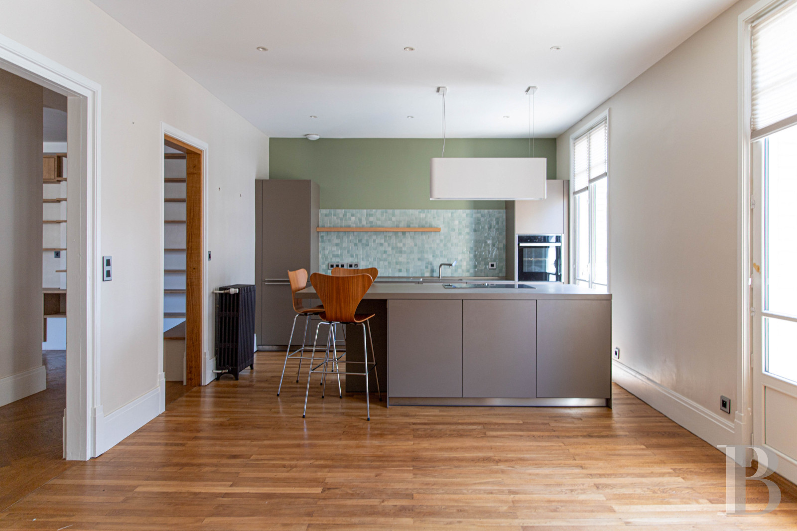 Au centre de la métropole rennaise, un vaste appartement récemment rénové, dans un immeuble emblématique du style Art déco. L'ensemble du logement est décoré avec goût, les matériaux et les équipements sont de qualité. La distribution des pièces de vie et des chambres est simple, fluide, les volumes sont généreux. L'ensemble est aussi lumineux, grâce aux larges baies doublées de balcons, où la vue porte au loin sur les toits du centre ancien. À deux pas de la place République, l'adresse est centrale et remarquable, idéale pour une famille de citadins.