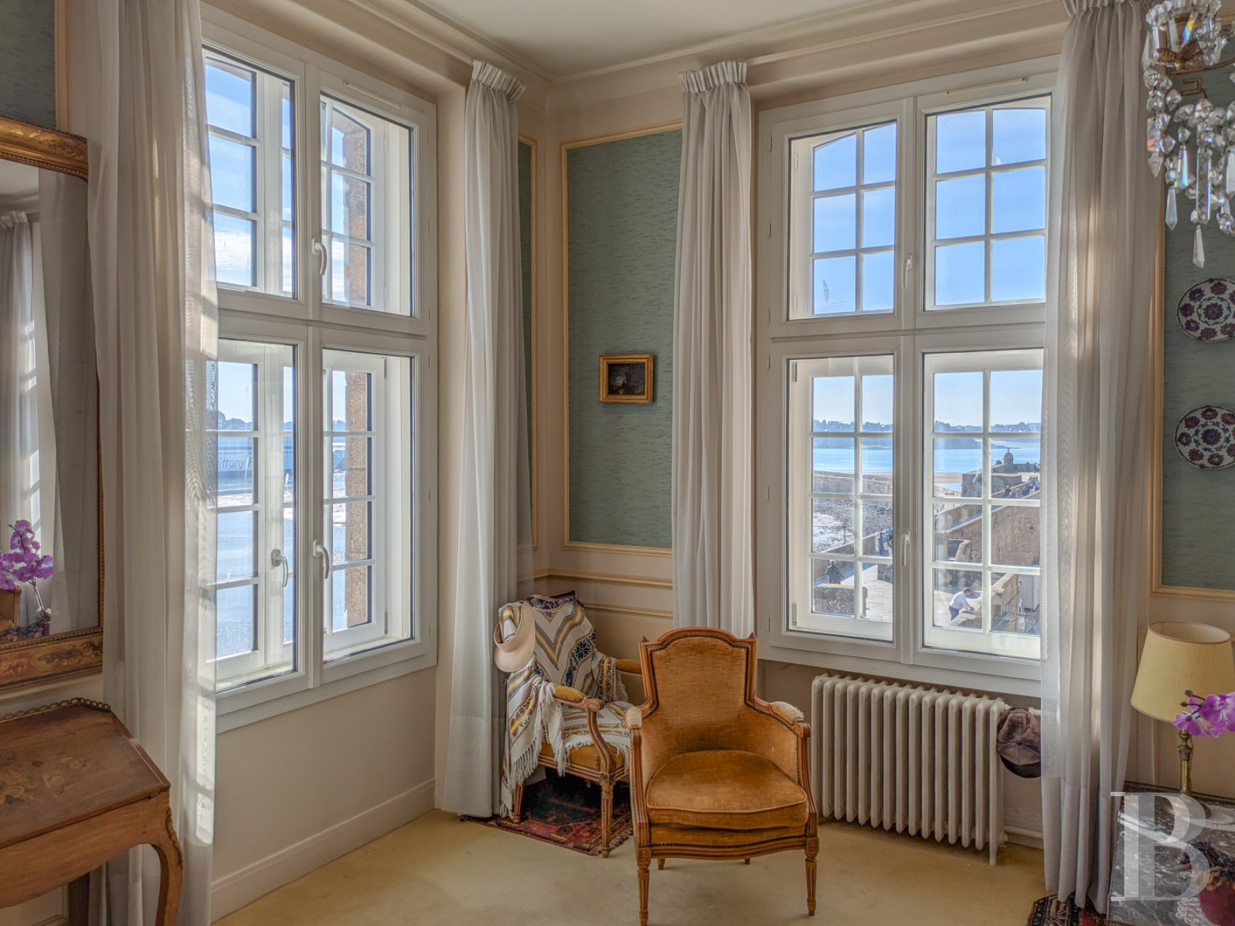 Derrière les remparts de la cité corsaire, un appartement tourné vers la mer. Au dernier étage d’un immeuble d’armateur emblématique d’Intra-Muros, il profite d’une orientation favorable et d’une lumière constante. Le décor bourgeois, aujourd’hui à rafraîchir, conserve des proportions amples et la distribution caractéristique des grands appartements malouins. L’ouverture possible d’une seconde porte palière permettrait d’envisager une division sans bouleverser l’organisation des lieux. Avec cave, grenier et dépendance, l’ensemble pourra convenir à une famille attachée aux séjours bretons comme à un actif désireux d’établir son point d’ancrage à Saint-Malo, entre ville close et horizon maritime.