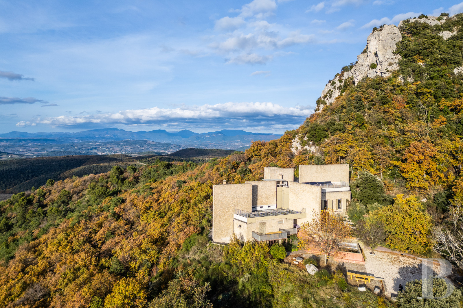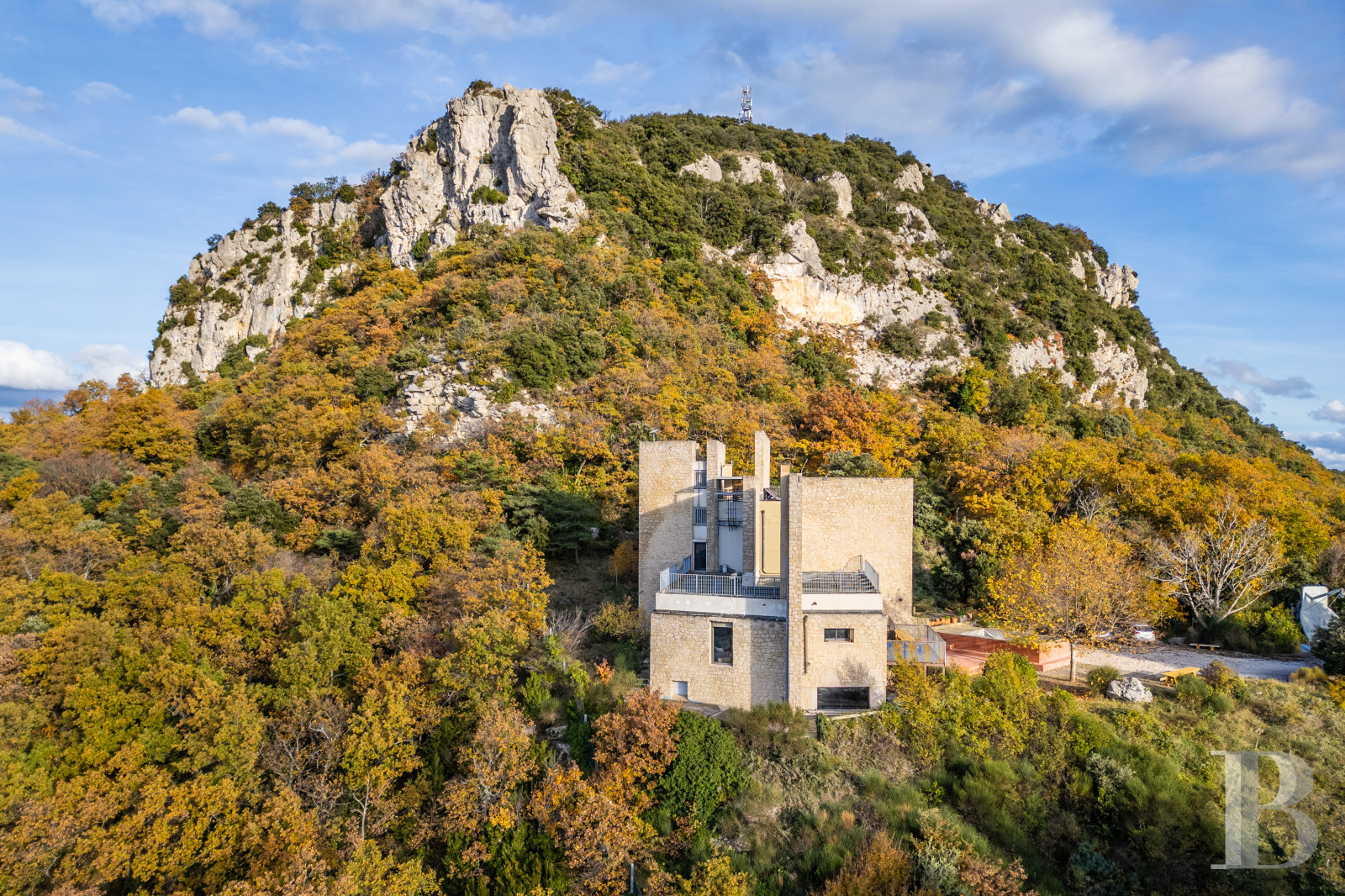 Un "bout du monde" et un endroit dont l'accès se mérite, un havre de silence et un véritable "nid d'aigle", si le rapace dit "de Bonelli" ne l'occupait déjà quotidiennement. Posé à l'écart de la civilisation, mais paradoxalement conçu à l'origine pour faciliter les communications humaines, il offre tout le confort d'une habitation contemporaine dont chaque détail a été pensé, recherché et réalisé avec soin. Rien n'a été laissé au hasard, même si le travail est resté inachevé pour une infime partie. Maison familiale, restaurant panoramique, résidence d'artistes, lieu de ressourcement, à l'écart de toute pollution sonore ou visuelle : les usages ne manquent pas pour qui voudra les imaginer et les mettre en oeuvre.