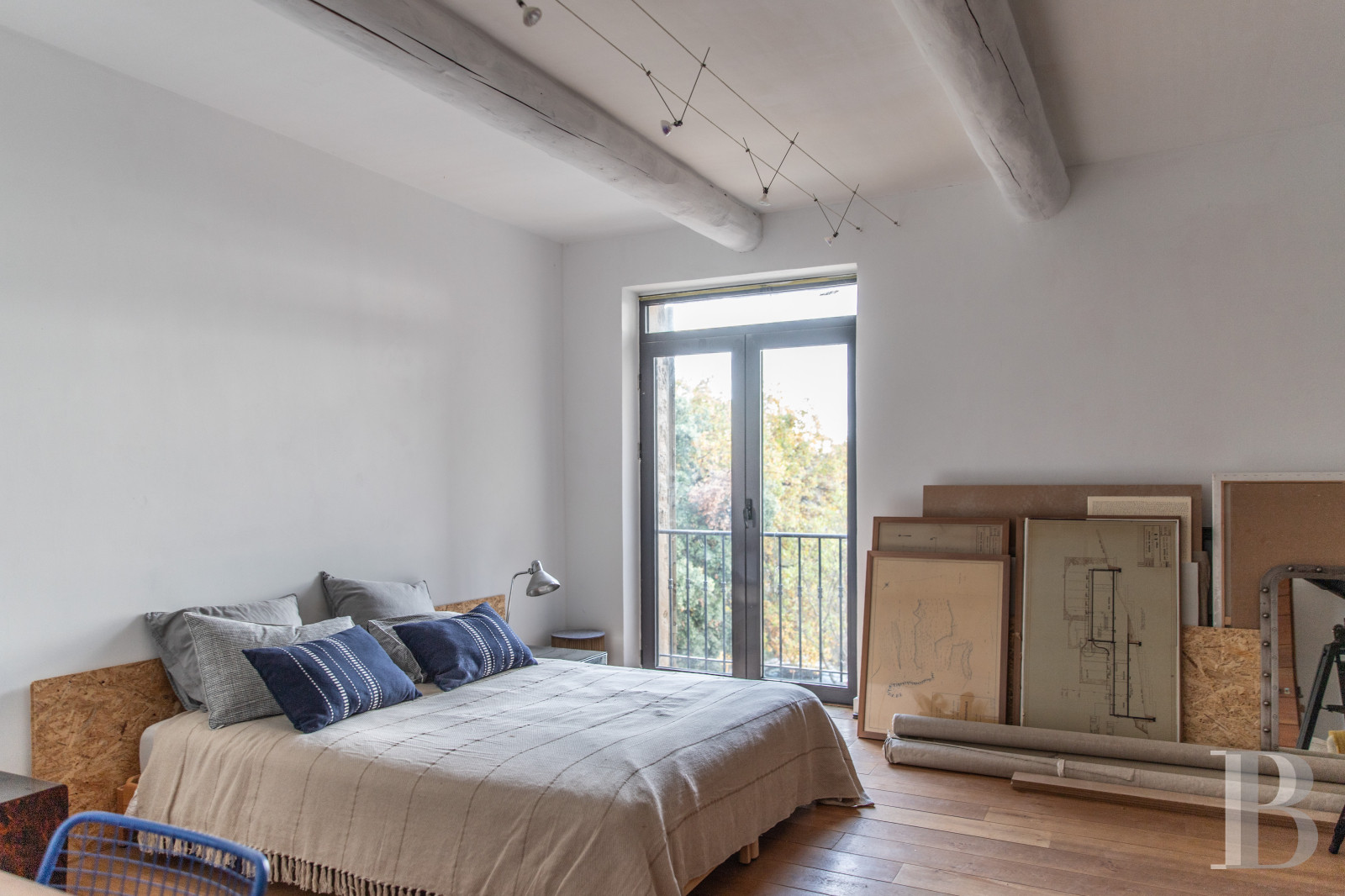 Trois immenses chambres et deux salles de bain au design avant-gardiste très personnalisé occupent ce niveau, dont le plancher, en dalles d'épicéa compressé vernis, a été posé sur la dalle de béton originelle. Toutes les proportions sont ici à l'échelle du lieu, teinté de souvenirs d'habitats méridionaux, en particulier dans les couleurs adoptées et les matériaux employés. Ainsi de solides contrevents d'une facture provençale traditionnelle, peints d'un vert olive très caractéristique, occultent les larges baies à double vitrage qui ont remplacé les ouvertures techniques austères de l'ancienne station. La vue depuis chaque chambre au sud et depuis chaque salle de bains au nord est proprement à couper le souffle.