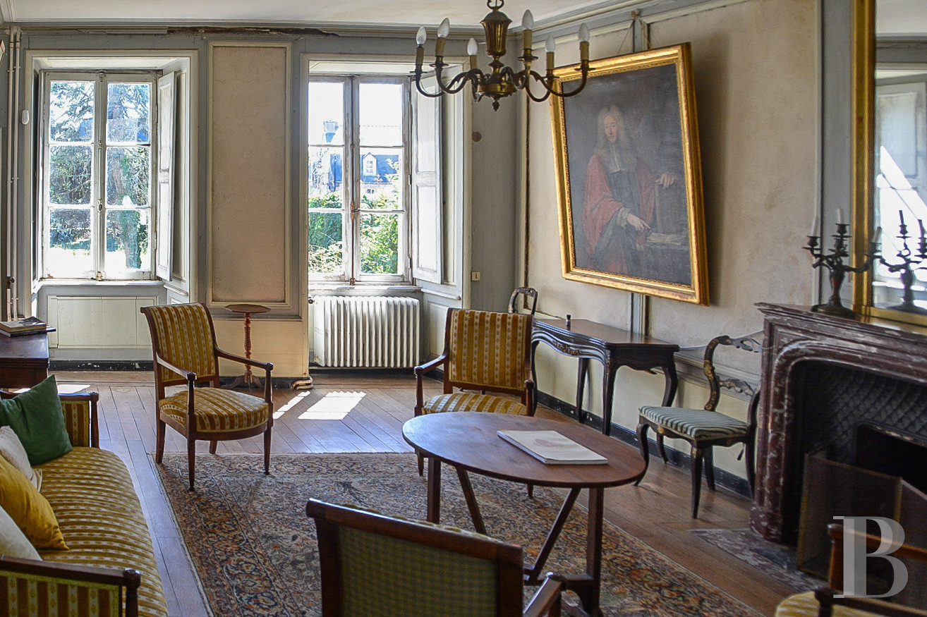 Depuis la cour et le jardin, deux portes accèdent à un grand vestibule qui dessert, d'un côté, un salon et une salle à manger, de l'autre, une cuisine et une grande pièce vers l'aile nord. Le vestibule abrite un vaste escalier en bois qui dessert les deux étages. Une double porte vitrée marque la séparation avec le vestibule. La salle à manger est éclairée par une baie orientée sur le jardin au sud. Entièrement habillée de boiseries, elle est parquetée. Le salon, lumineux, est percé de baies de part et d’autre. Son sol est parqueté et ses murs sont en partie revêtus de boiseries. Sur le mur arrière, une porte en bois mène à un couloir qui rejoint le vestibule.