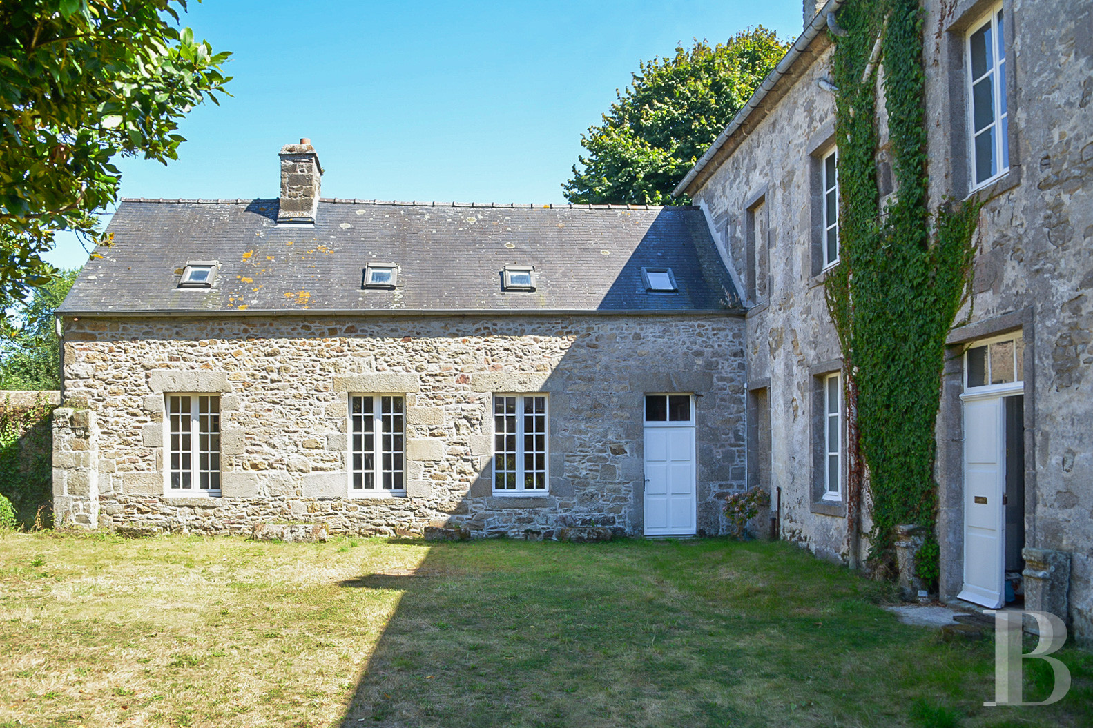 Situé au nord, en retour d'équerre du logis principal, elle dispose de sa propre entrée indépendante depuis la cour. Édifiée en moellon de granit sur deux niveaux, elle est coiffée d'une toiture en ardoise à deux pans, surmontée d'une cheminée. La façade est percée de trois baies sur la cour. Au rez-de-chaussée, l'entrée abrite un escalier vers l'étage et communique avec la grande pièce de l'hôtel particulier. En enfilade, une porte ouvre vers une pièce avec cheminée en granit, au sol dallé de pierre de granit, qui sert de salle à manger. S'ensuit une cuisine. Le premier étage abrite deux chambres, des toilettes avec lavabo et la salle de bains de la chambre de l'hôtel particulier. L'ensemble nécessite des travaux de rénovation et pourra être loué indépendamment.