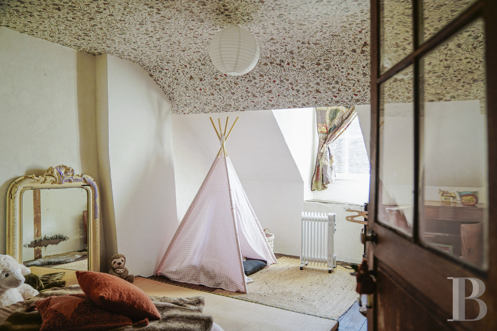 L'escalier ancien à quart tournant et en bois patiné mène à une dernière chambre parquetée à larges lames en chêne et éclairée d'une lucarne. Un petit palier commande ensuite un vaste grenier sous combles, percé d'une lucarne et d'un vasistas. Le sol est également parqueté à larges lames.