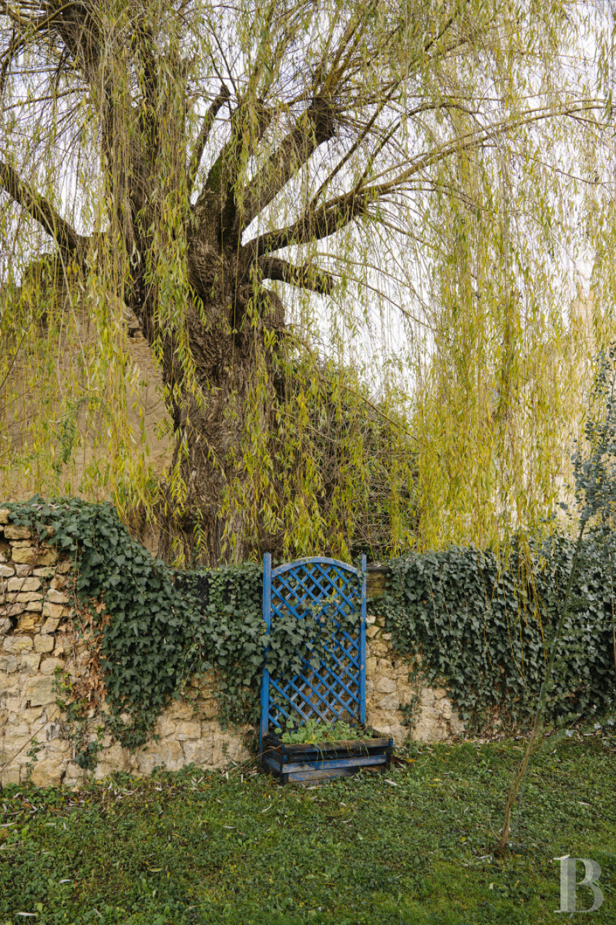 Deux espaces séparent la maison et les dépendances des rives de l'Indre, divisés par un mur de pierre dans lequel deux ouvertures ont été aménagées. L'un est consacré principalement au potager et comprend un accès direct à l'eau, l'autre plus ornemental comprend une grande variété d'arbres, d'arbustes et de fleurs avec plusieurs chambres de verdure enherbées.