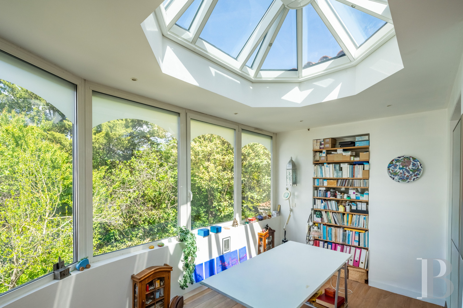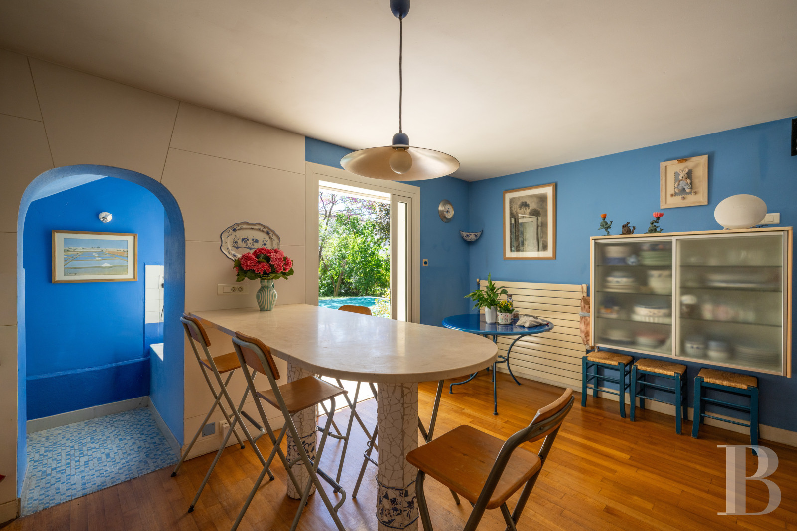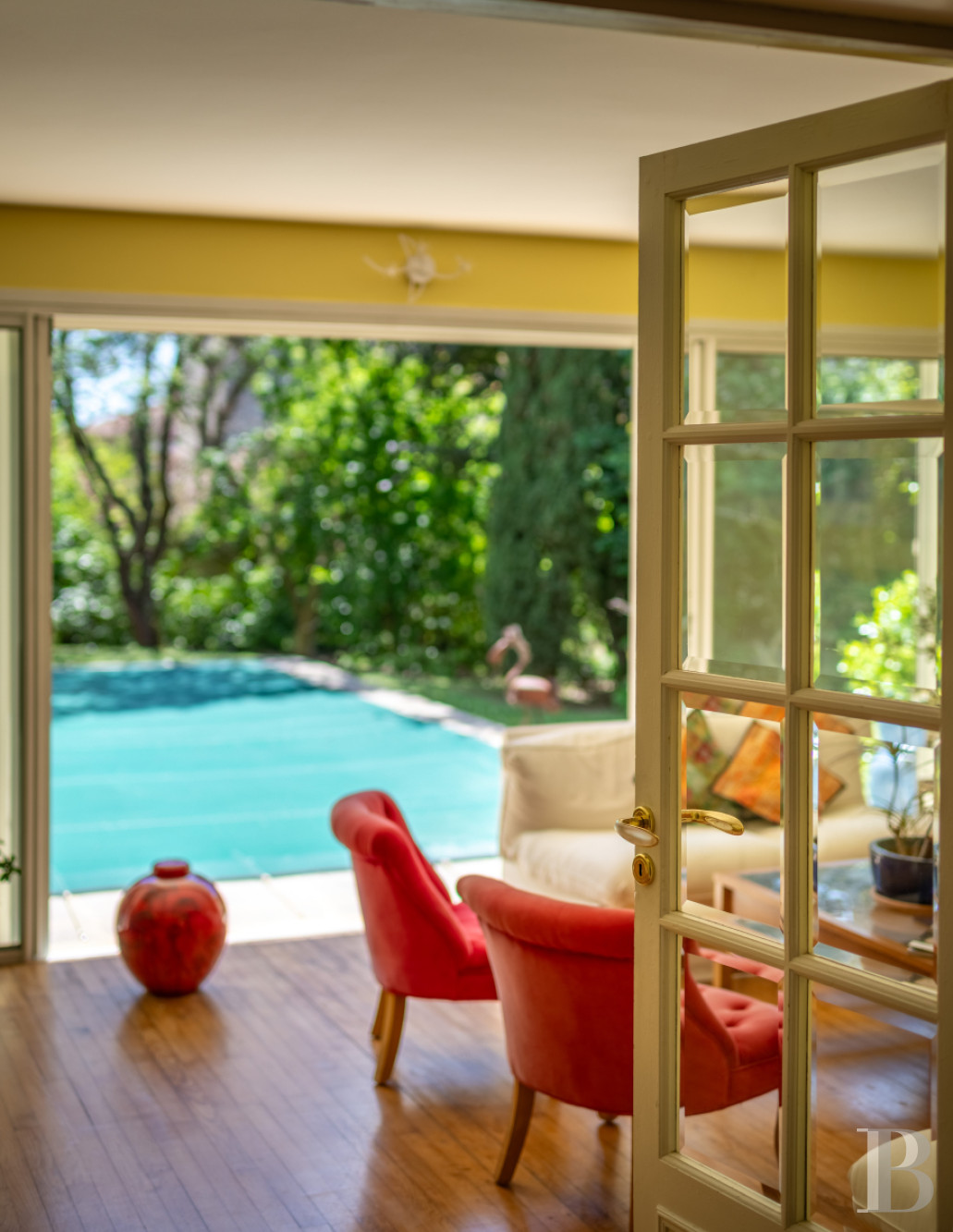 Une maison des années 1950 revisitée, lumineuse et singulière. Derrière sa façade de brique, elle dévoile une identité façonnée par des interventions successives. L’extension arrondie, largement vitrée, constitue une pièce manifeste, baignée d’une lumière zénithale et ouverte sur la végétation. Les espaces de vie, orientés au sud, prolongent naturellement le rapport au jardin et à la piscine, dans une continuité dedans-dehors. L’ensemble se distingue par une présence décorative affirmée : mosaïques graphiques, papiers peints et détails soignés composent une atmosphère chaleureuse. À l’étage, volumes et usages se diversifient, tandis que le jardin dense garantit l'intimité de chacun. À proximité immédiate du centre de la Ville rose et à moins de 2 km du canal du Midi, elle promet un équilibre entre animation urbaine et douceur paysagère.