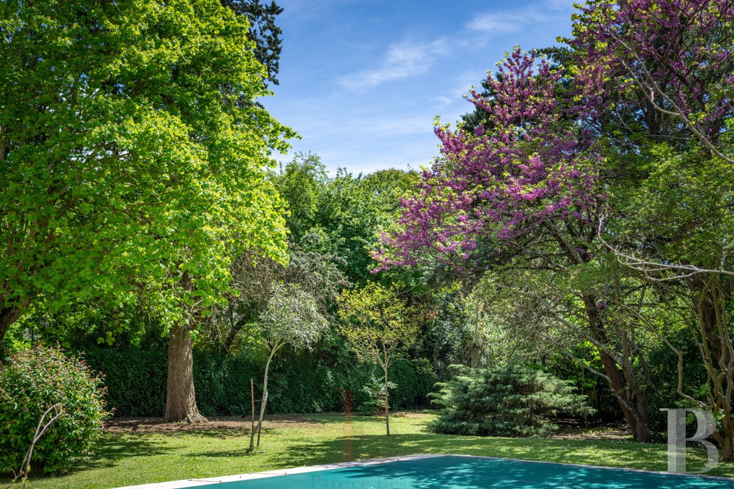 Relativement grand pour une zone densément peuplée, il est jalonné de nombreuses essences : érables, arbres de Judée, lagerstroemias, buis, rosiers, conifères, lauriers-roses, seringats, orangers du Mexique, eucalyptus, cyprès, jasmin, troènes ou acacias. Leurs frondaisons forment un écran végétal qui limite les vis-à-vis, notamment autour de la piscine. Un dispositif de récupération des eaux de pluie est raccordé à celle-ci.Ce que nous en pensons