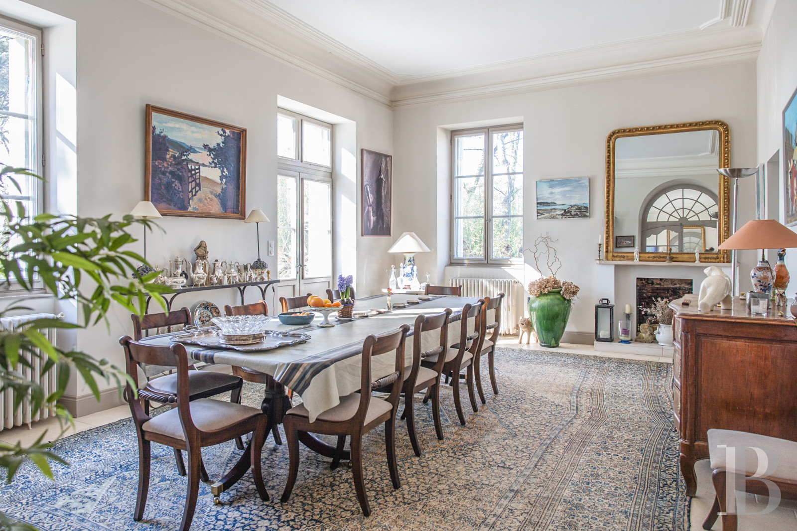 Une maison noble landaise qui séduit d’abord par son équilibre : celui d’une architecture du 19e s. remaniée avec intelligence, d’un parc structuré sans ostentation et d’un environnement où la nature demeure souveraine. L’ensemble a conservé son âme – volumes généreux, éléments anciens préservés, distribution élégante – mais promet le confort nécessaire à une vie contemporaine. La vue lointaine sur les Pyrénées, la lumière traversante du vestibule à l’italienne et la présence des grands arbres confèrent à l’ensemble une respiration peu commune. Le cadre se prête naturellement à une grande maison de famille, à un lieu de transmission, ou encore à une demeure ouverte à des hôtes sensibles à l’authenticité d’un territoire. Non loin de Dax et de l’océan, la propriété conjugue art de vivre chalossais, discrétion et accessibilité. Une demeure qui appartient à son paysage, appelée à poursuivre son histoire entre de nouvelles mains.