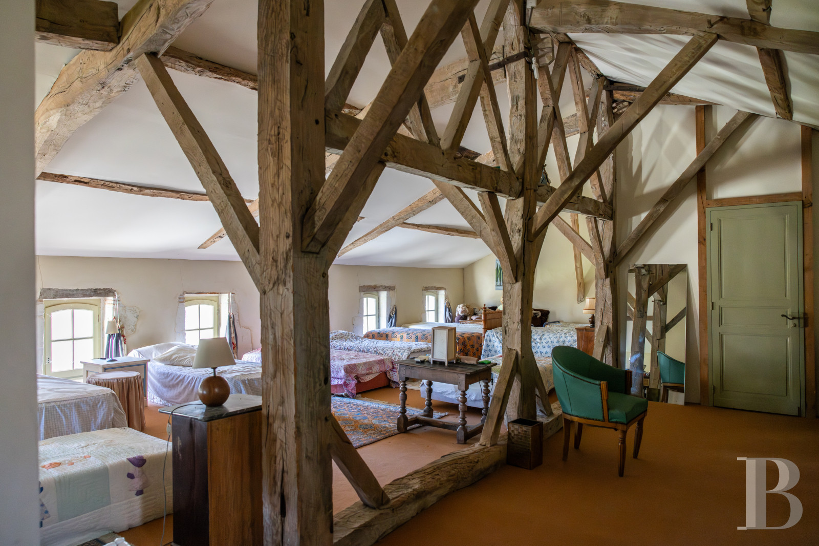 Placé directement sous le toit où l’imposante charpente est visible, il réserve de grands volumes. Un dortoir d’environ 110 m², propice à des usages familiaux, occupe la partie est. Une salle de bains est située au fond du plateau. De l’autre côté du palier, une bibliothèque de près 120 m² sert également d’atelier de peinture.