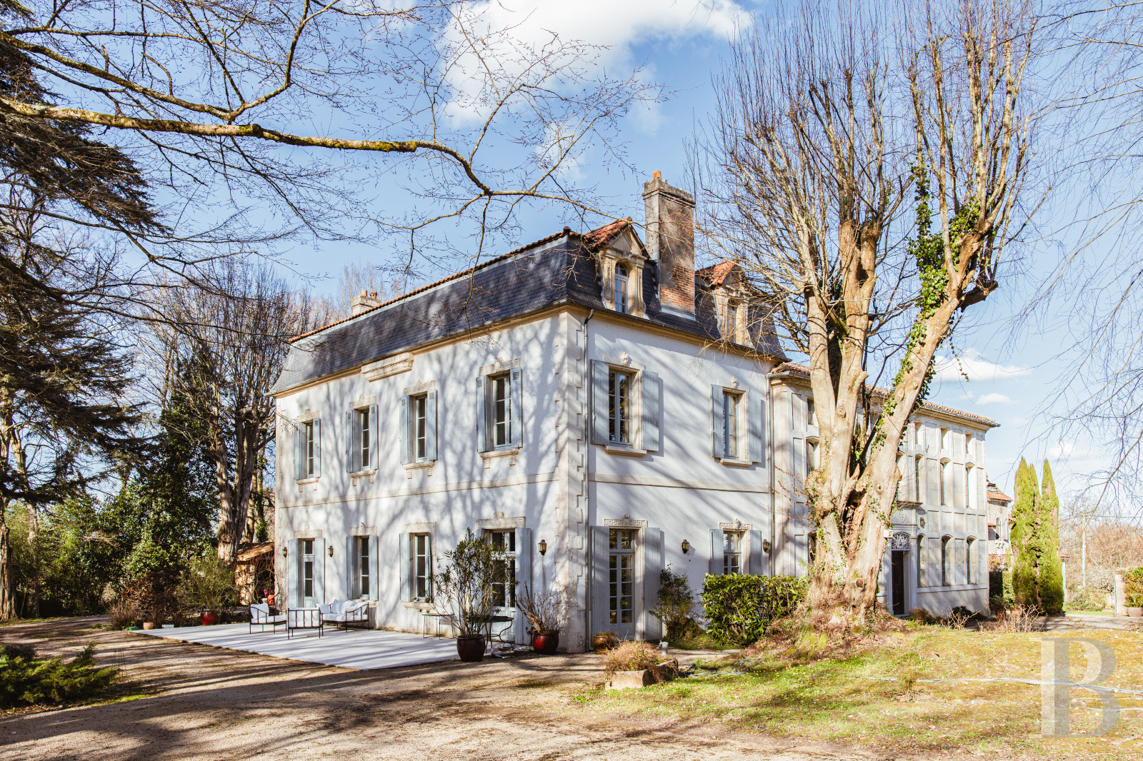 Sur une superficie d’environ 2,5 ha, il est jalonné de cèdres, chênes, hêtres, lagerstroemias, mimosas et autres arbres centenaires. Un labyrinthe végétal, des massifs d’hortensias et de lauriers roses, un verger ajoutent une touche d’élégance et de fantaisie. Au sud-ouest, une grande terrasse en pierre donne accès à une partie du parc plus ombragée, où un espace repas a été installé sous une tonnelle. Au loin, la vue sur les Pyrénées ajoute un peu plus plus au calme de la propriété. Au fond, trois abris voitures et deux de jardin permettent la mise à l'abri de l’ensemble des équipements.La piscine