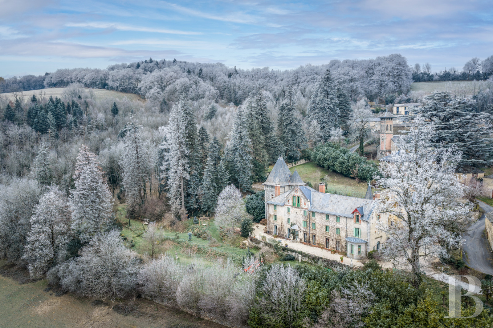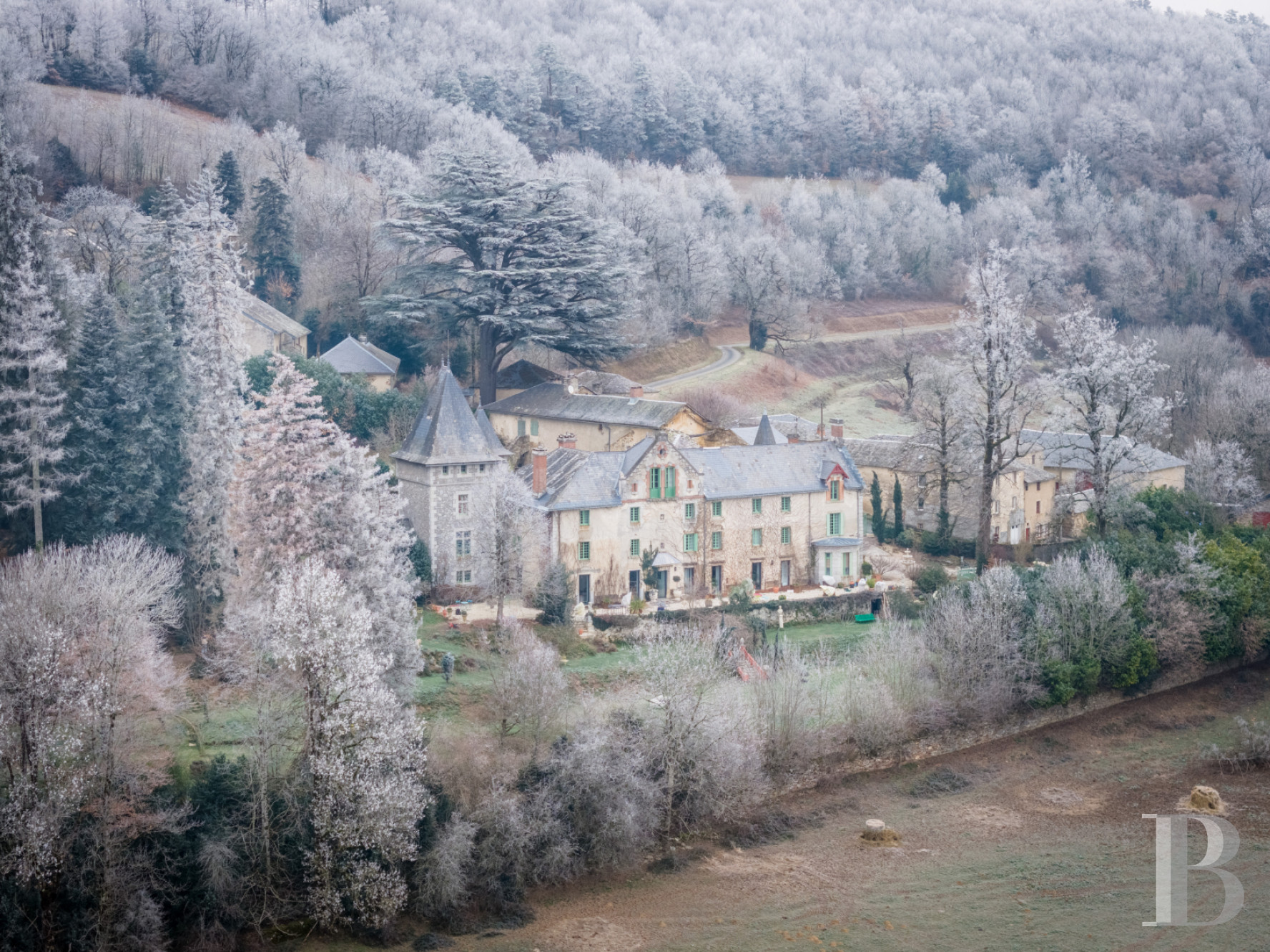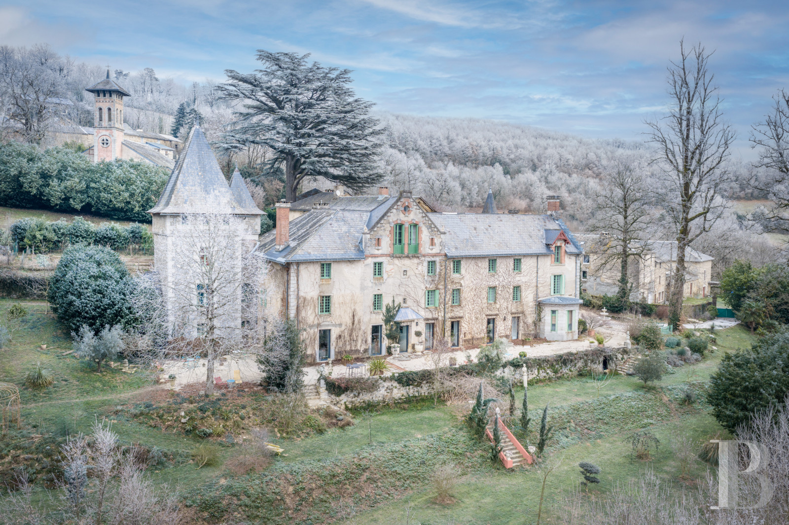 Un château en lisière d’un hameau des monts de Lacaune, marqué par un équilibre subtil entre présence architecturale et retenue paysagère. Réinterprété au 19e s. dans un langage éclectique maîtrisé, il conserve une lisibilité où chaque façade raconte une étape de son histoire sans jamais rompre l’harmonie d’ensemble. Les volumes généreux, la qualité des circulations intérieures et la lumière omniprésente en font une demeure propice aussi bien à la vie familiale qu’à l’accueil, tandis que les bois, les jardins étagés et les vues ouvertes sur la vallée s’accordent naturellement au territoire. Un ensemble cohérent et habité, à la fois protecteur et ouvert, dont la force tient autant à son architecture qu’à la douceur silencieuse du paysage qui l’enveloppe.
